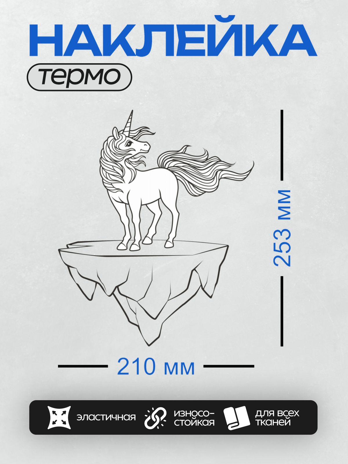 Термонаклейка на одежду DTF / Единорог стоит на краю парящей скалы.