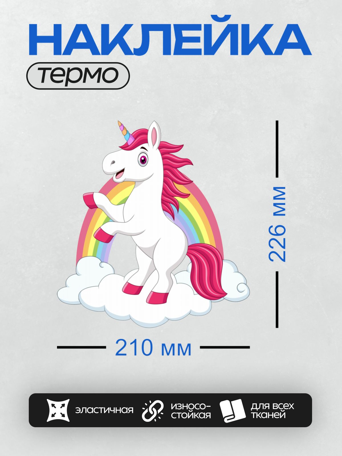 Дизайн: Единорог с красной гривой, радужным рогом и копытами. — идеально подходит для декора и восстановления одежды.