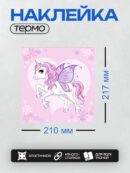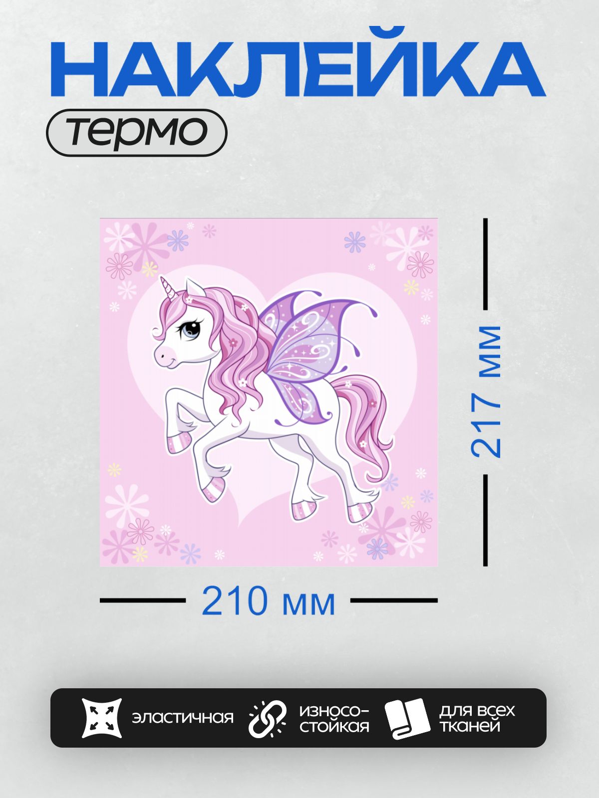 Дизайн: Единорог с крыльями бабочки на розовом фоне. — идеально подходит для декора и восстановления одежды.
