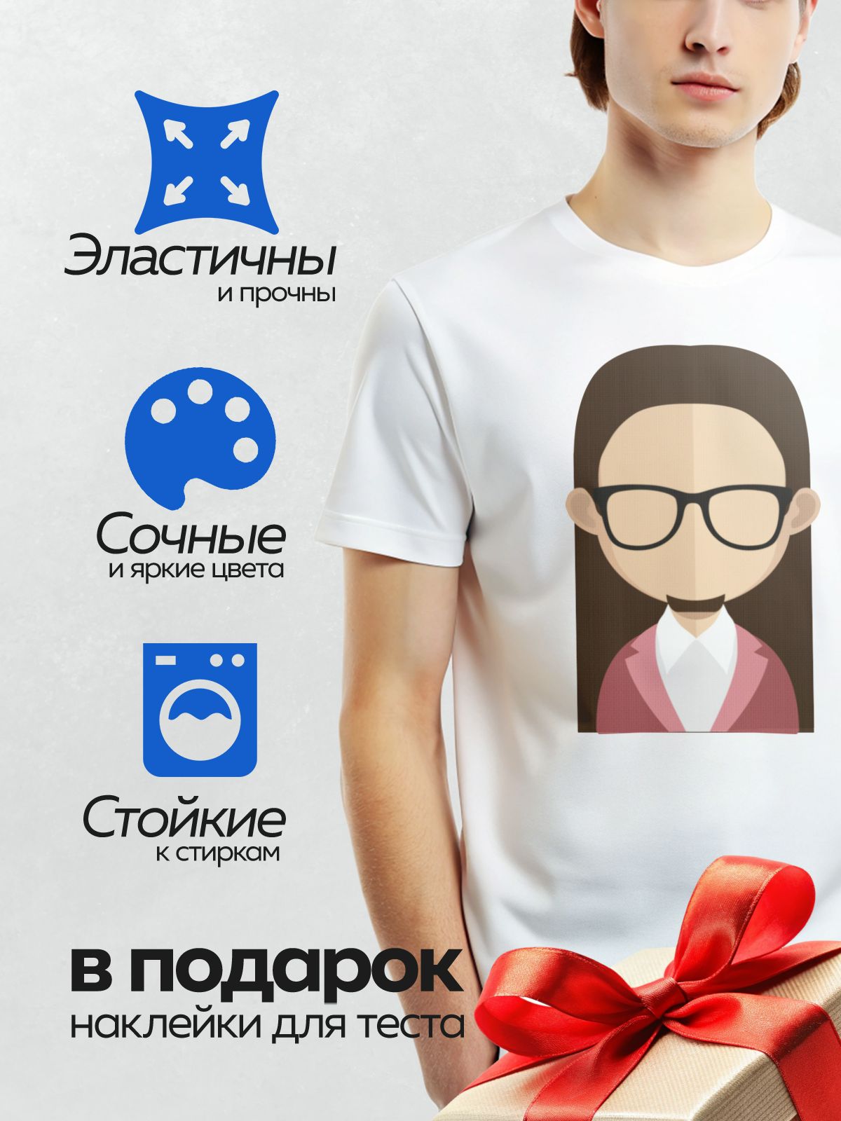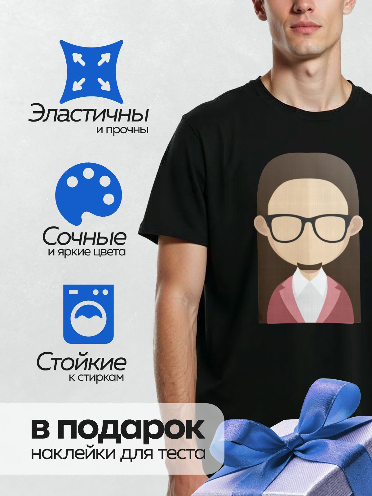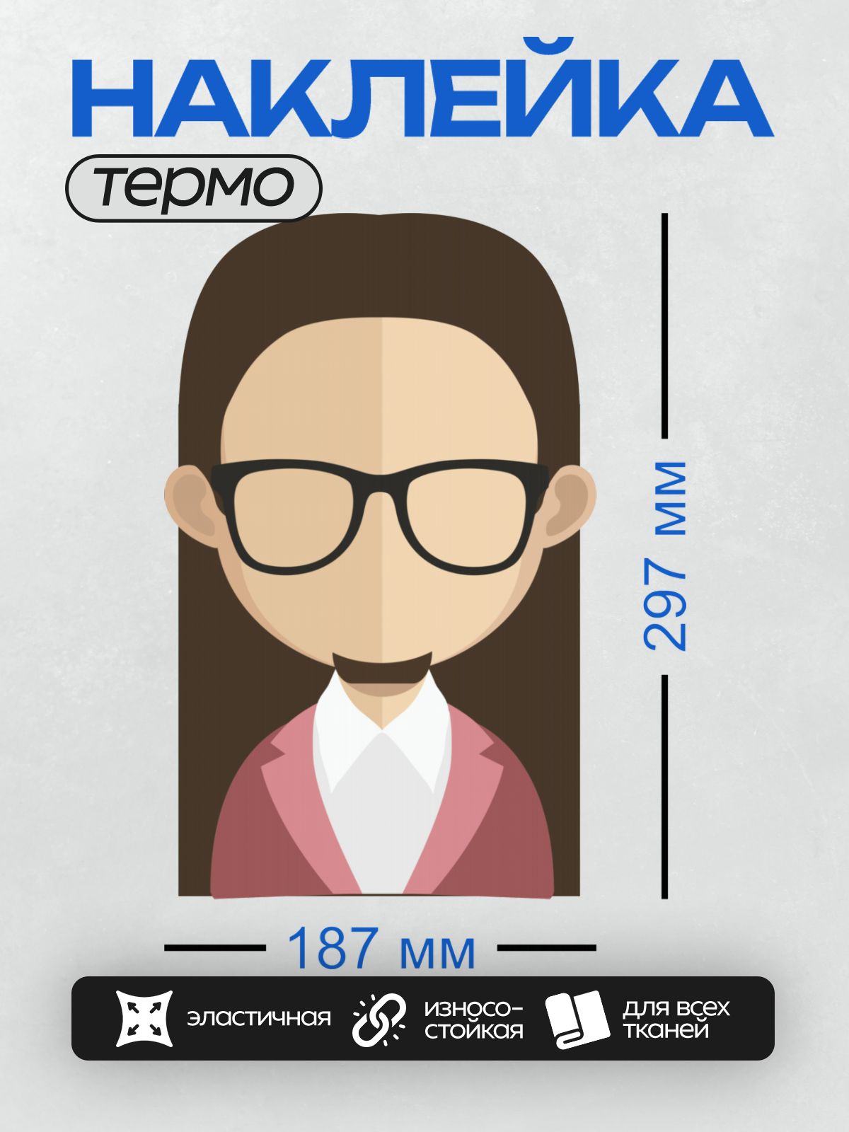 Термонаклейка на одежду DTF / Женщина в очках и розовом пиджаке.