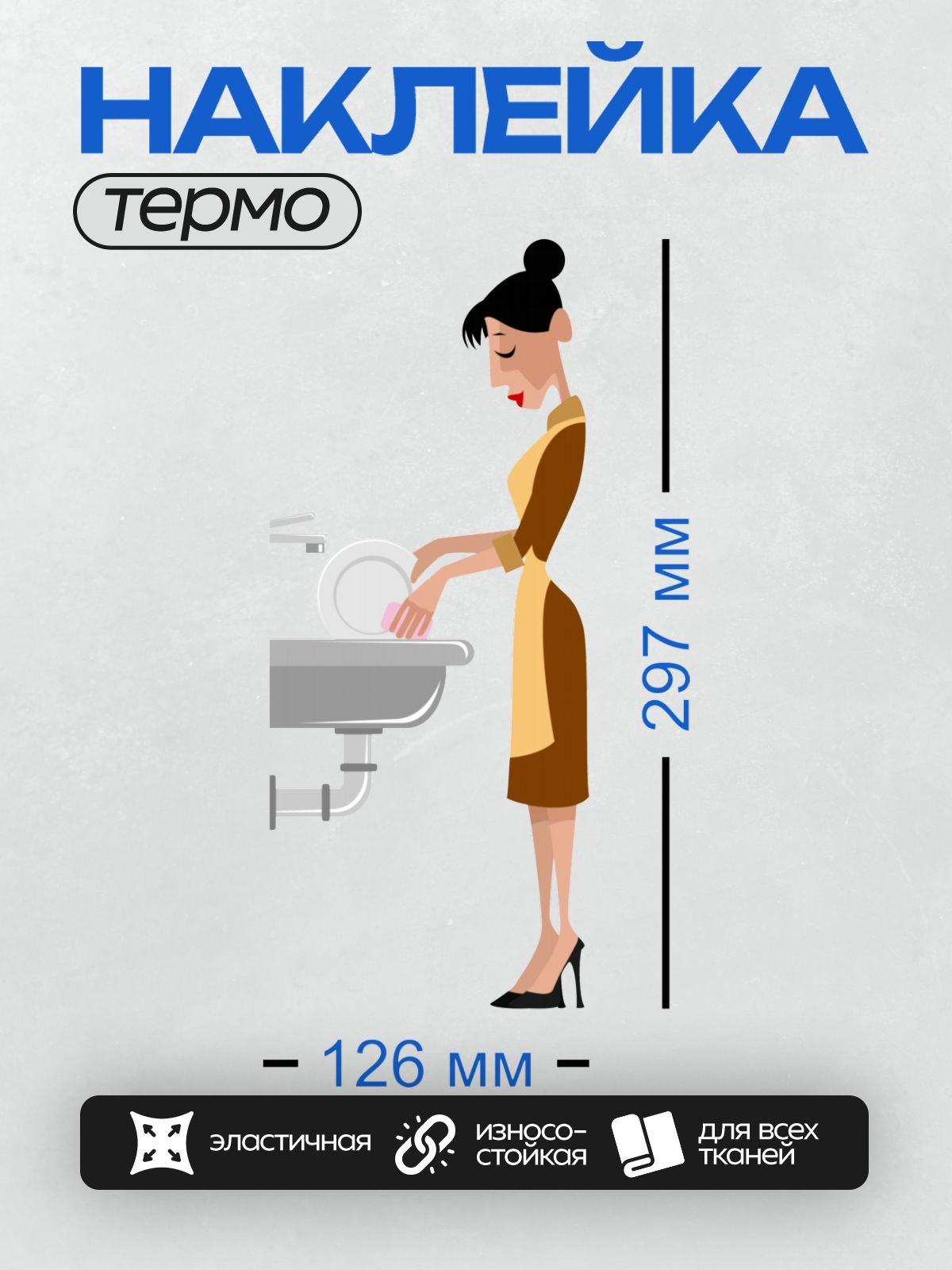Дизайн: Женщина моет посуду у раковины. — идеально подходит для декора и восстановления одежды.