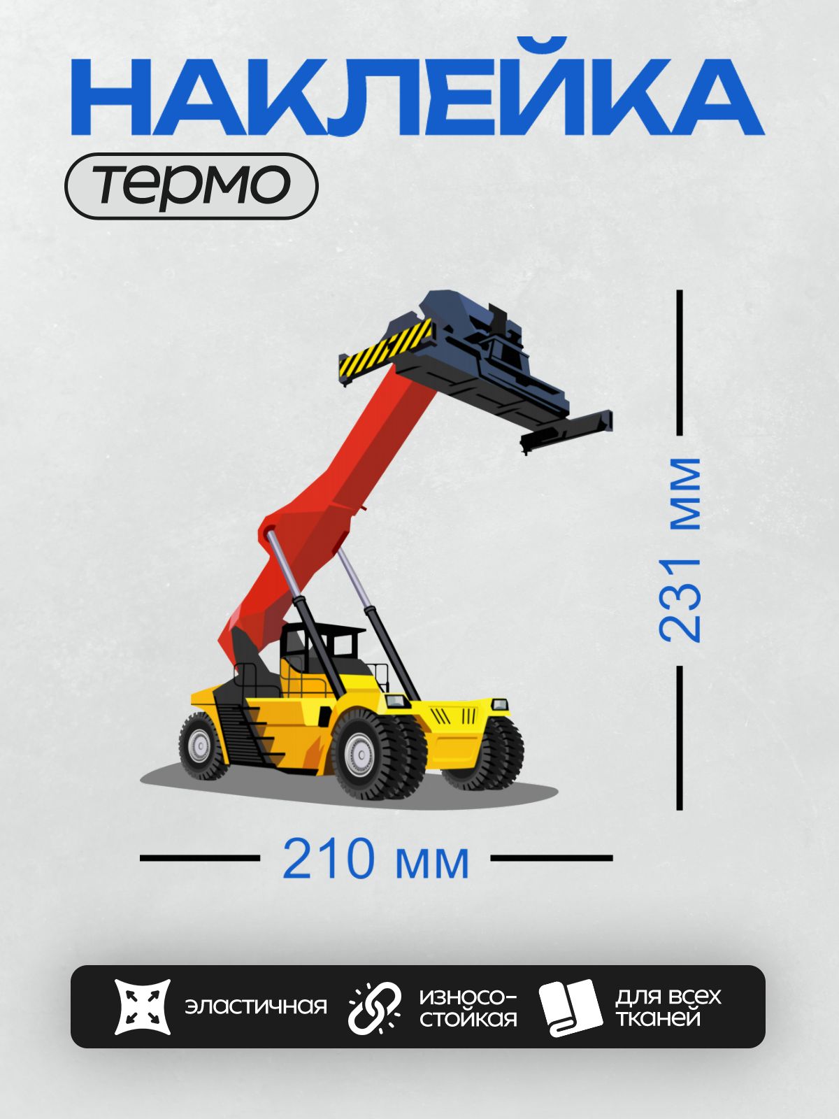 Дизайн: Жёлтый вилочный погрузчик с поднятой стрелой. — идеально подходит для декора и восстановления одежды.