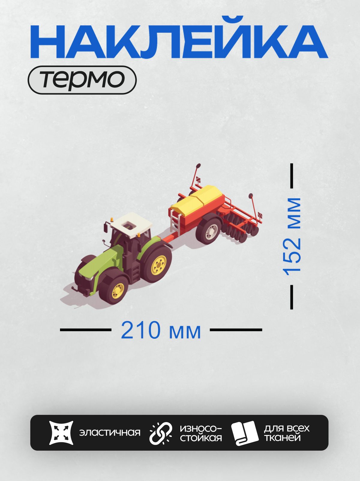 Термонаклейка на одежду DTF / Зелёный трактор с красным прицепом и плугом.