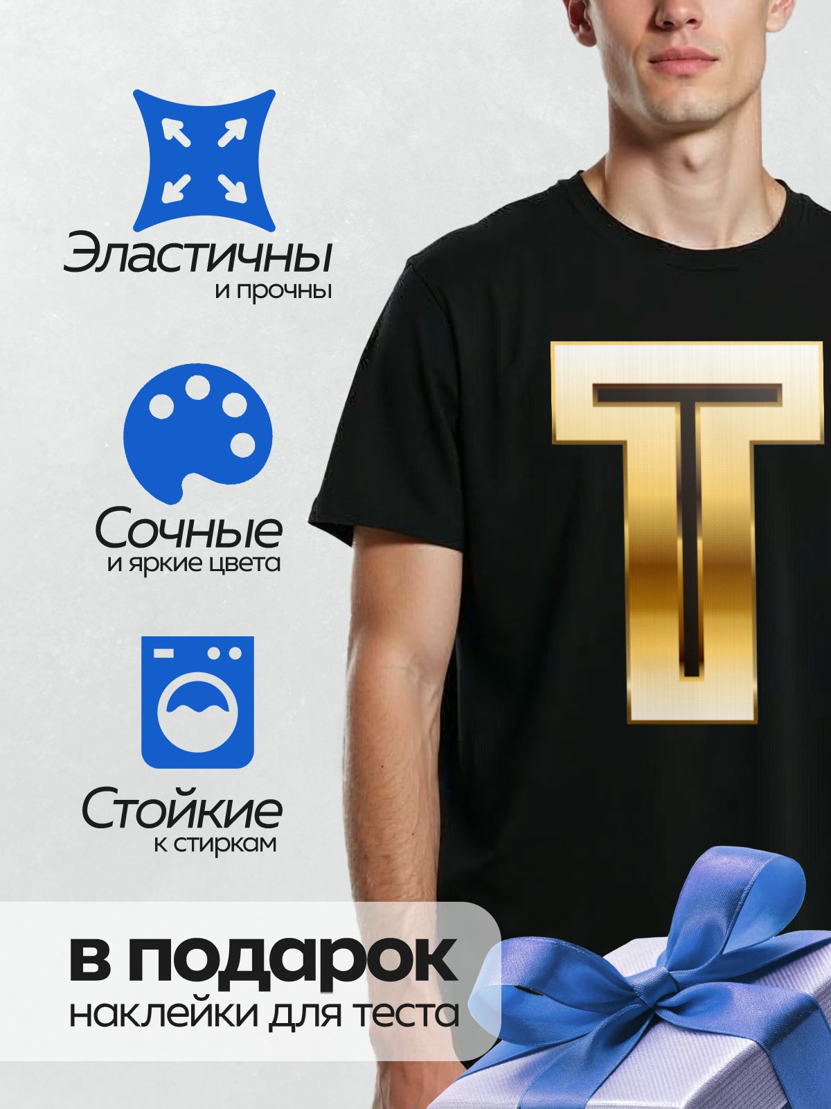 Дизайн: Золотая буква “Т” с черной окантовкой. — идеально подходит для декора и восстановления одежды.