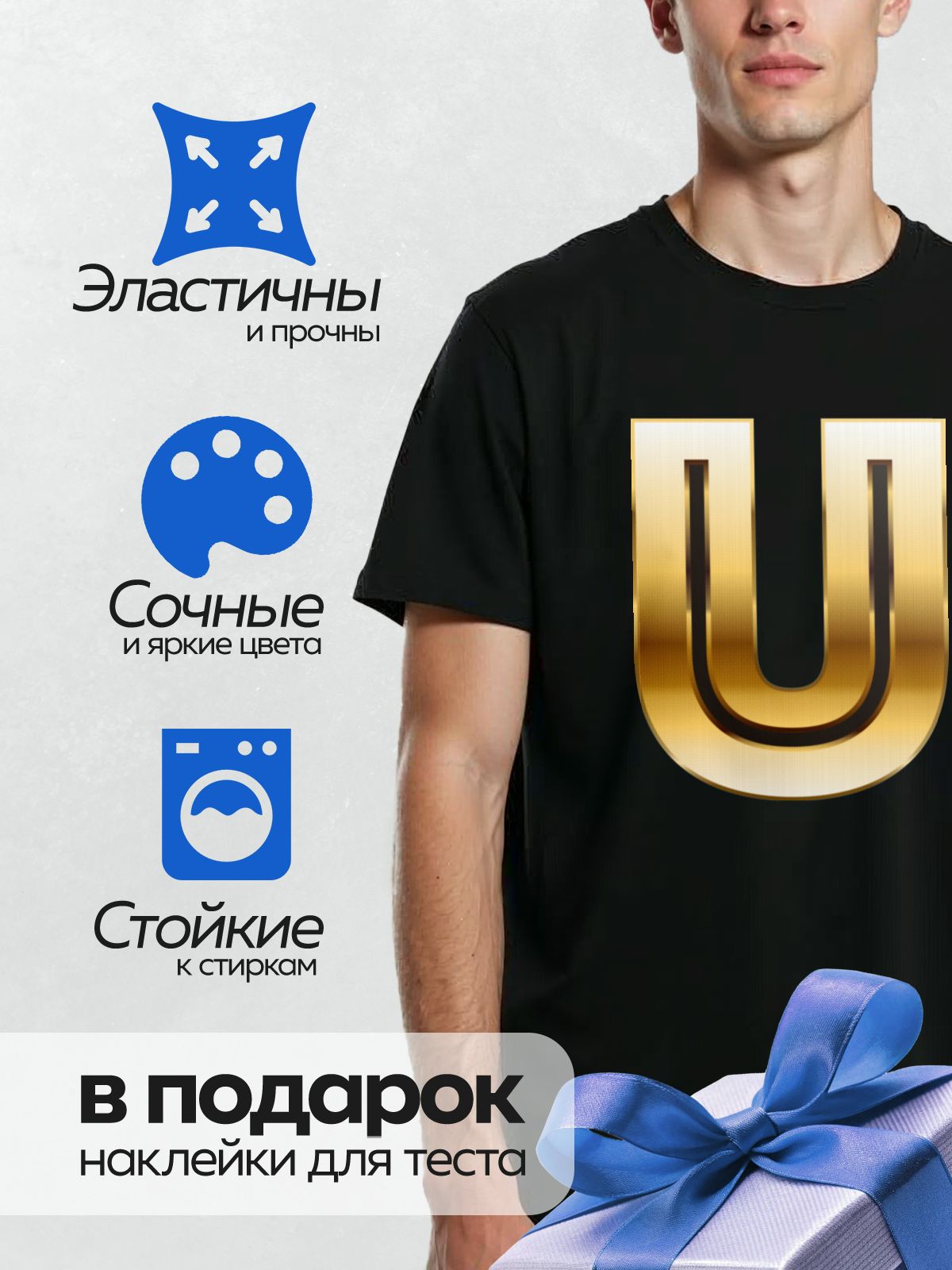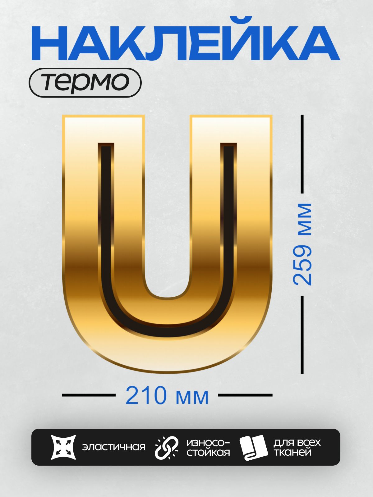 Дизайн: Золотая буква “U” с эффектом объема и блеска. — идеально подходит для декора и восстановления одежды.