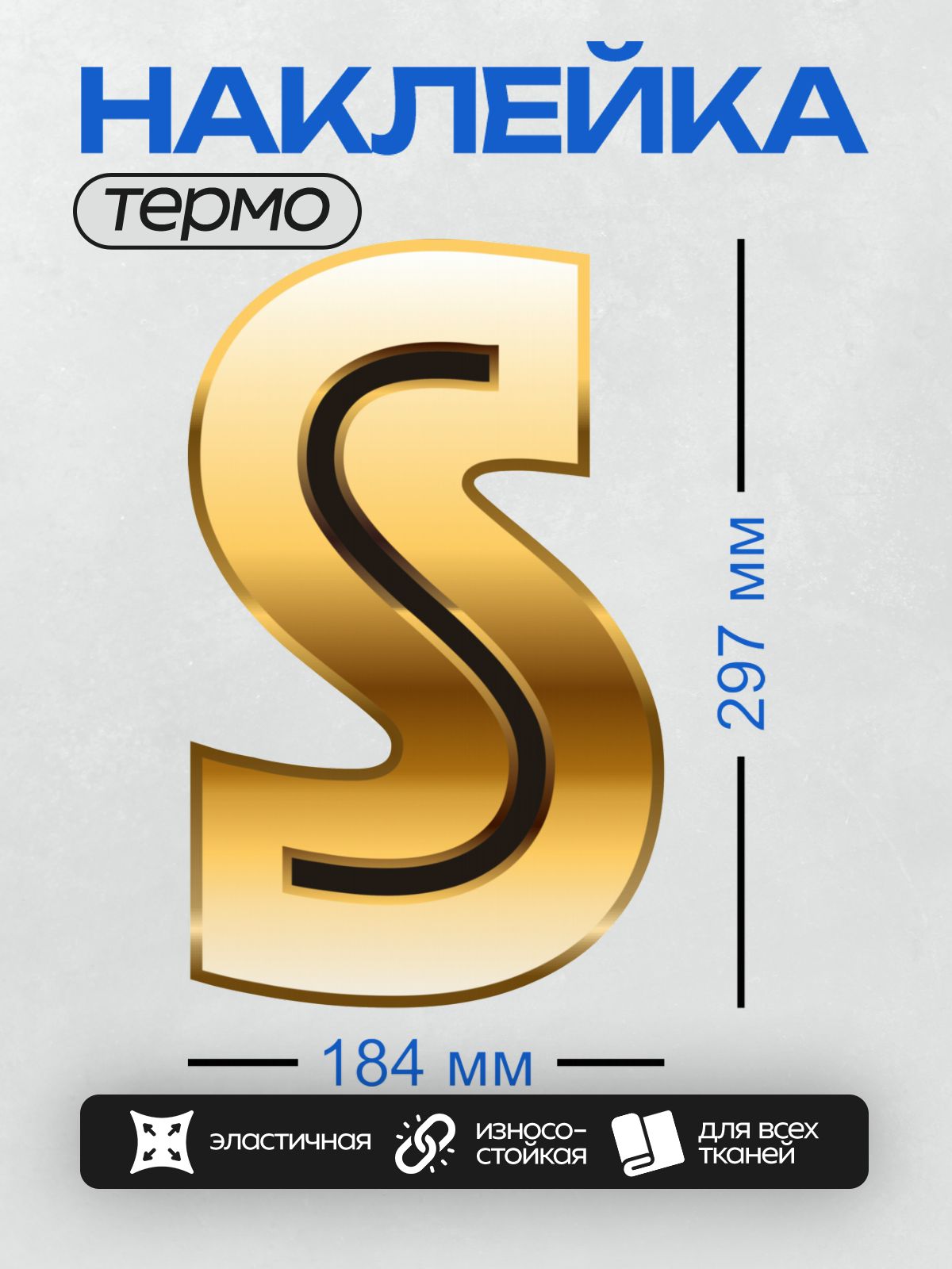 Дизайн: Золотая буква “S” на белом фоне, блестящая и объёмная. — идеально подходит для декора и восстановления одежды.