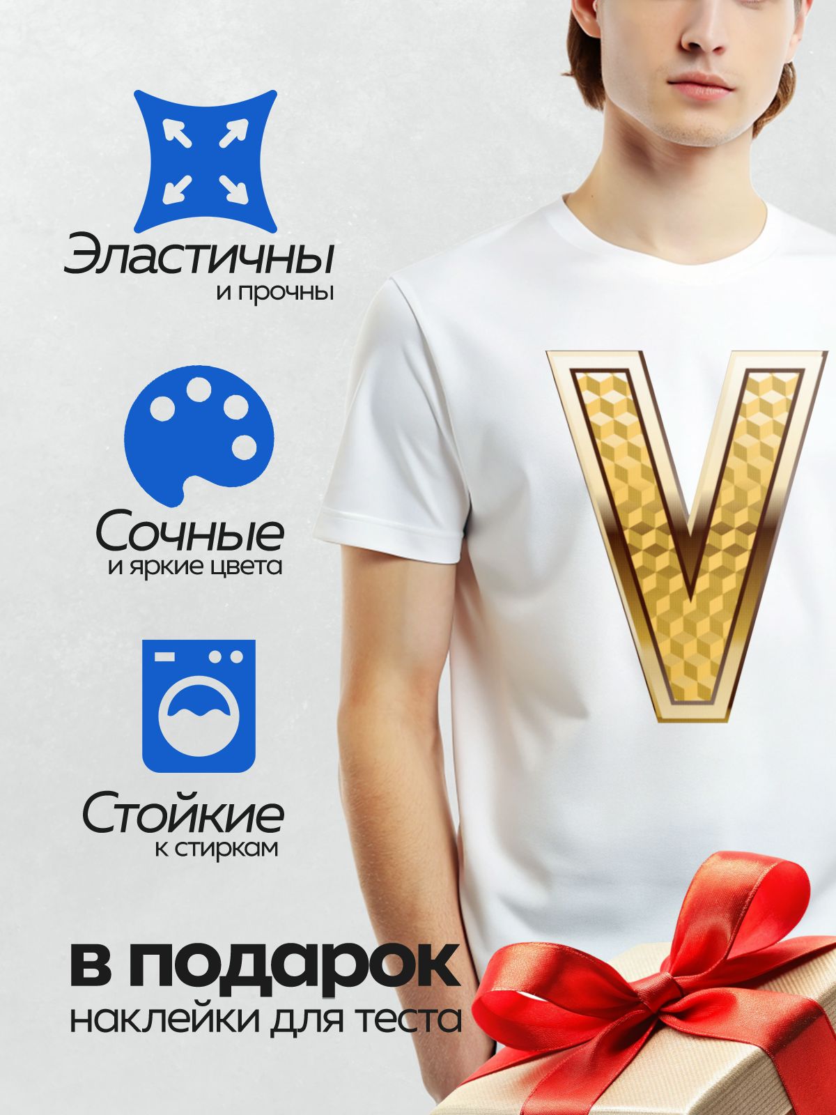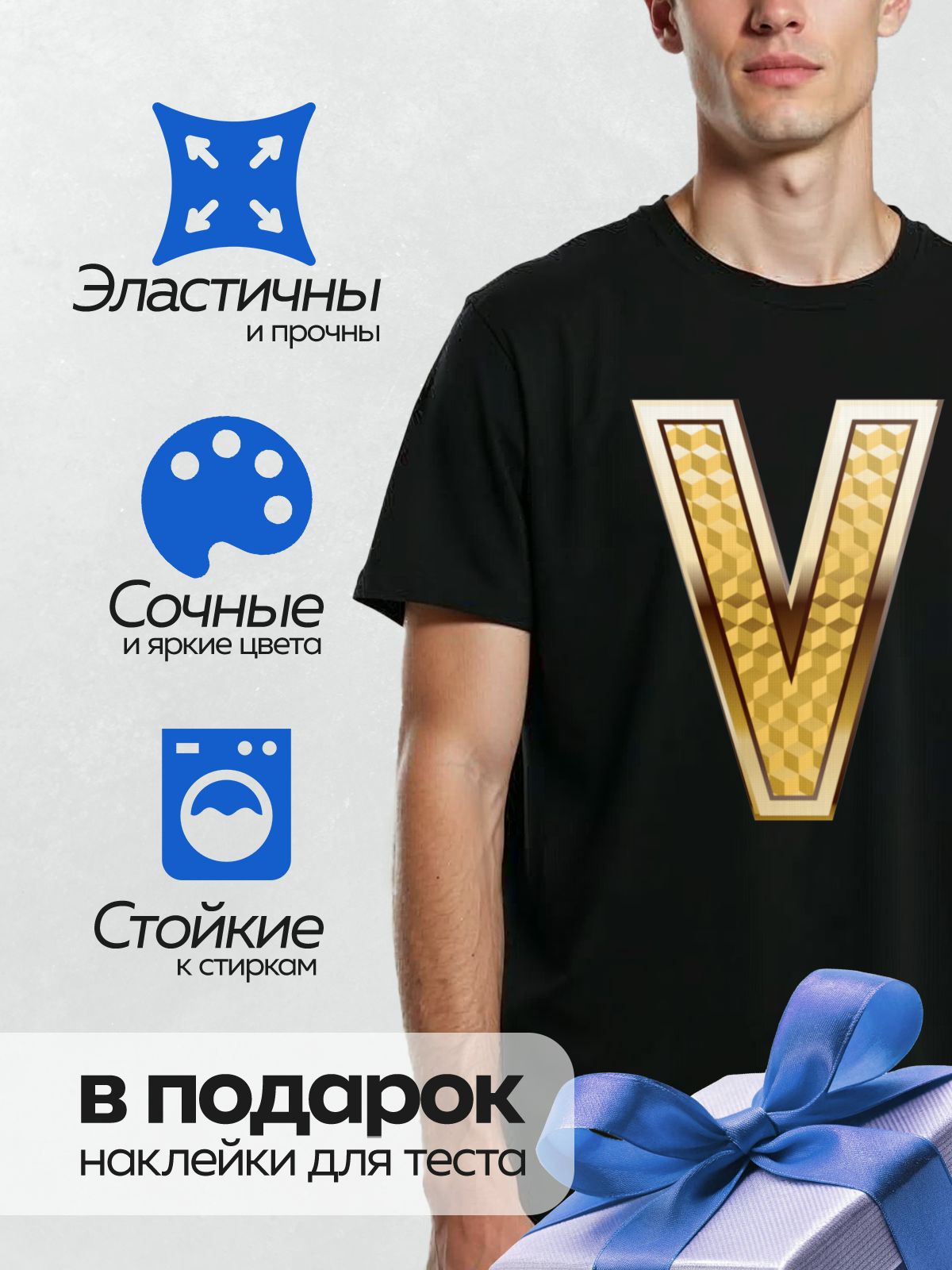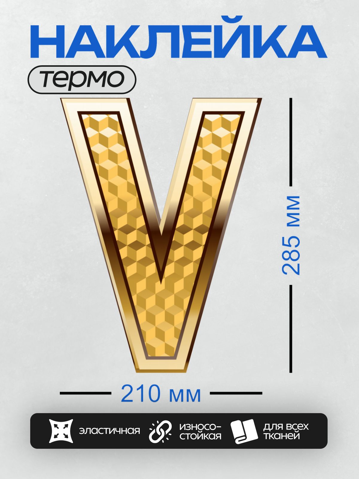 Дизайн: Золотая буква “V” с геометрическим узором. — идеально подходит для декора и восстановления одежды.
