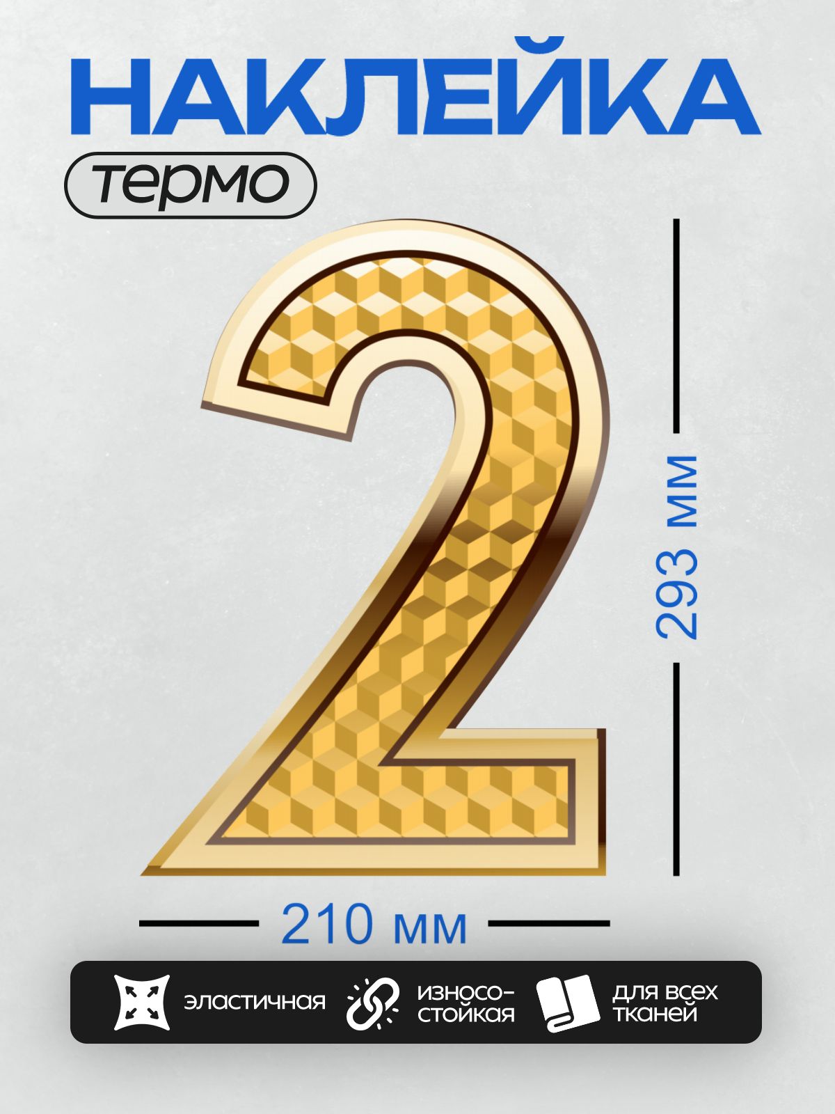 Дизайн: Золотая цифра 2 с геометрическим узором. — идеально подходит для декора и восстановления одежды.