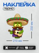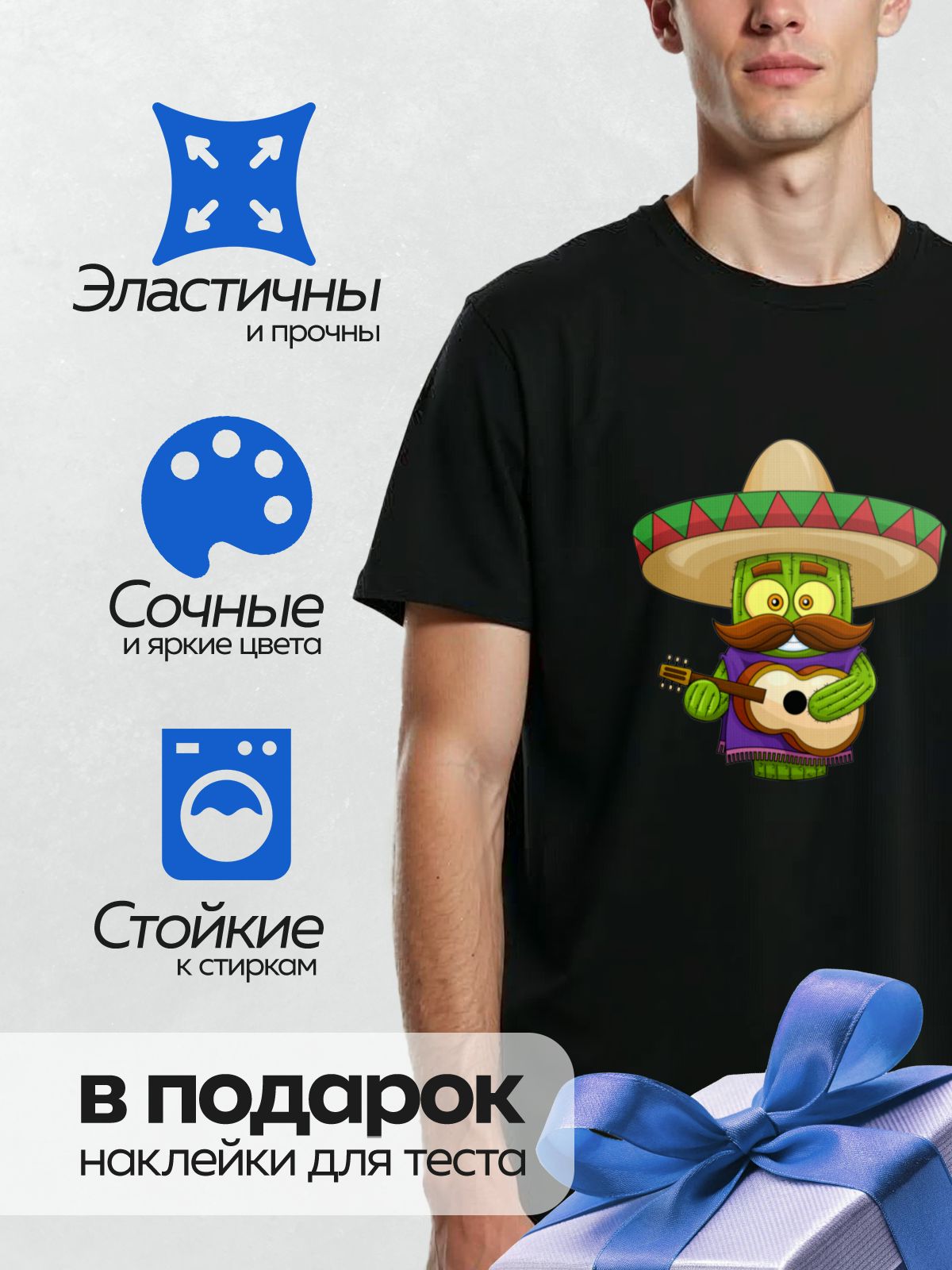 Дизайн: Кактус в сомбреро с гитарой, мультяшный стиль. — идеально подходит для декора и восстановления одежды.