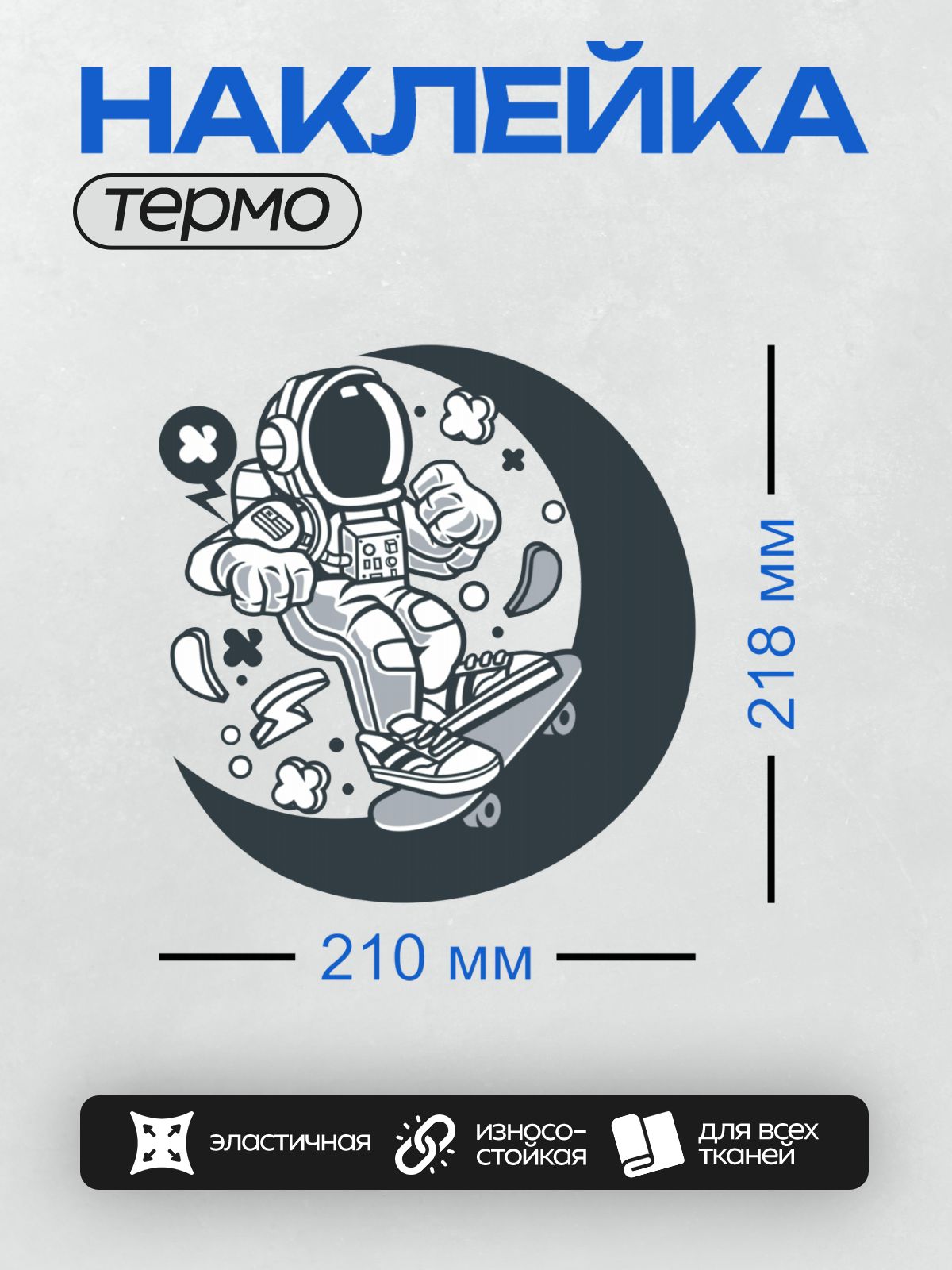 Дизайн: Космонавт на скейтборде на фоне полумесяца. — идеально подходит для декора и восстановления одежды.
