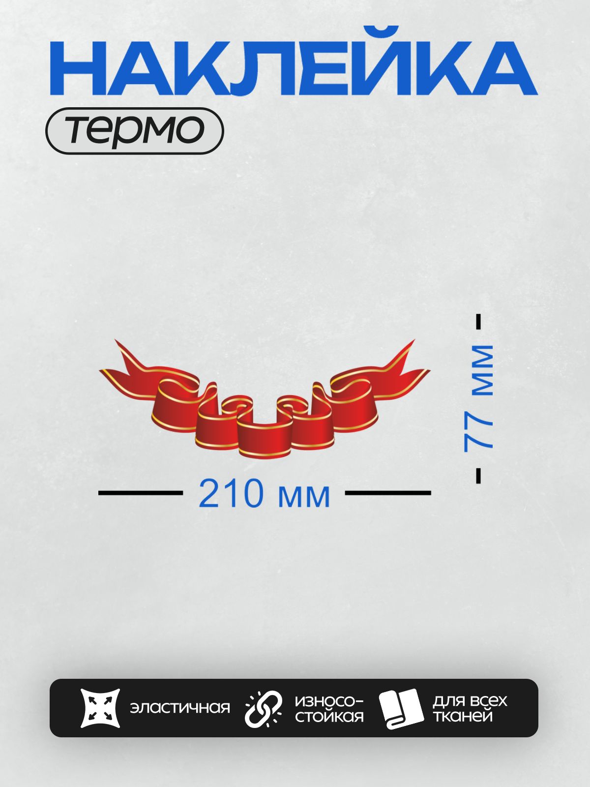 Термонаклейка на одежду DTF / Красная лента с золотыми краями, декоративный элемент.