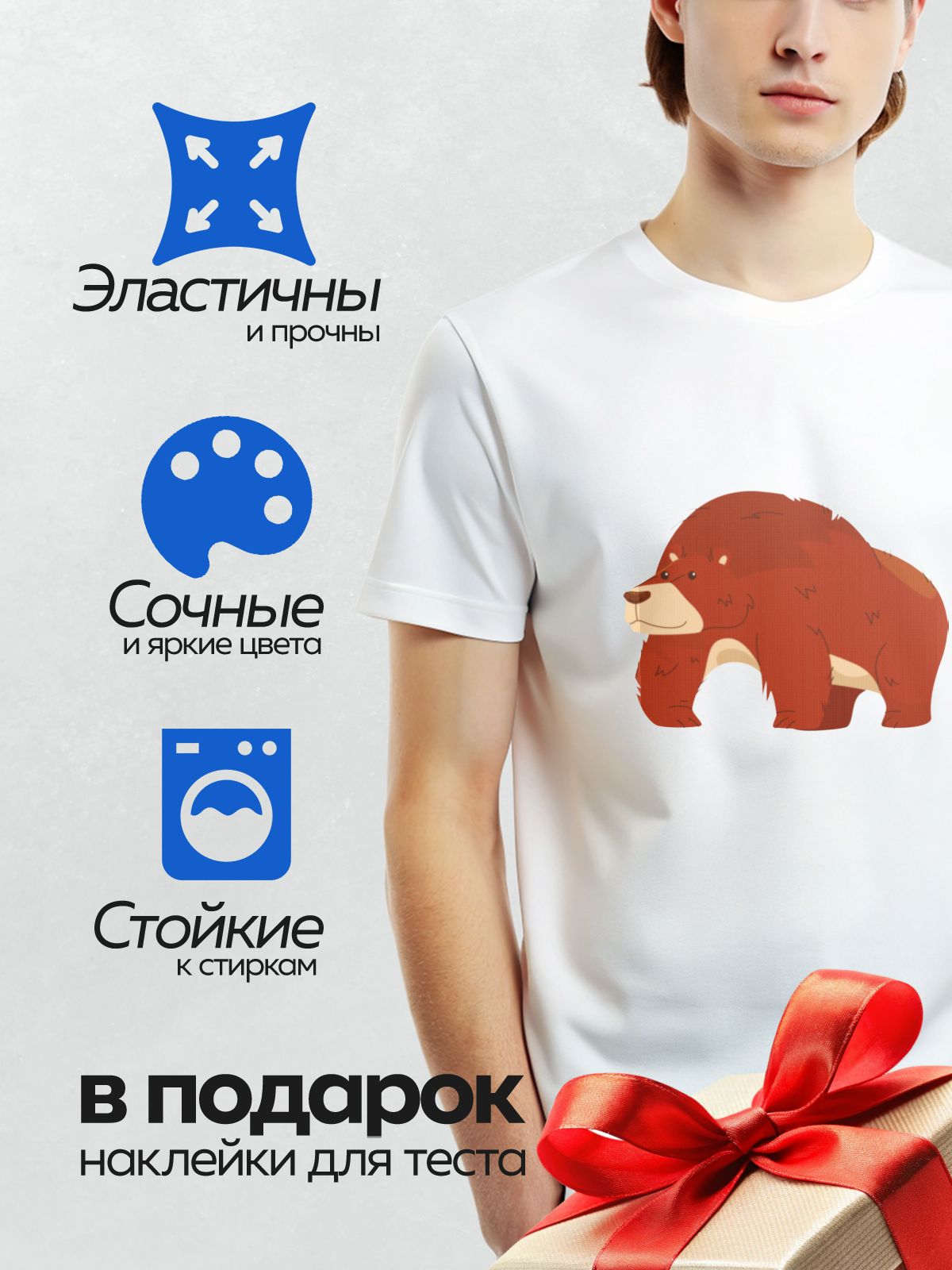 Термонаклейка на одежду DTF / Красный мультяшный медведь в профиль.