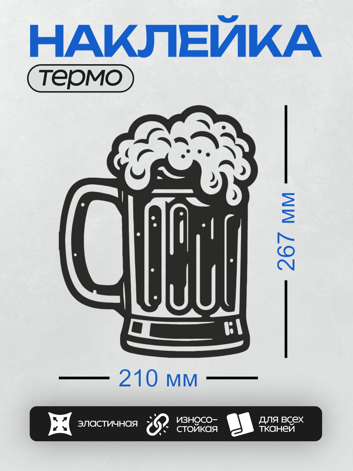 Дизайн: Кружка пива с густой пенной шапкой. — идеально подходит для декора и восстановления одежды.