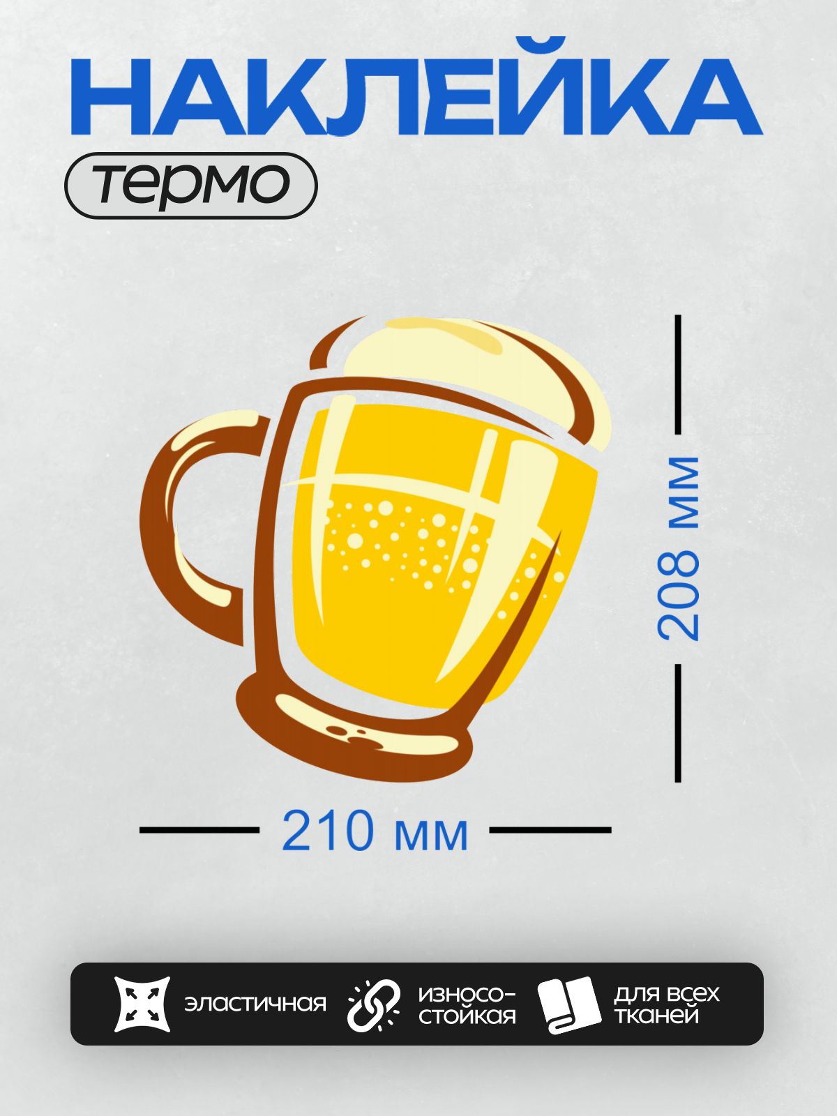 Термонаклейка на одежду DTF / Кружка пива с пеной, яркая и аппетитная.