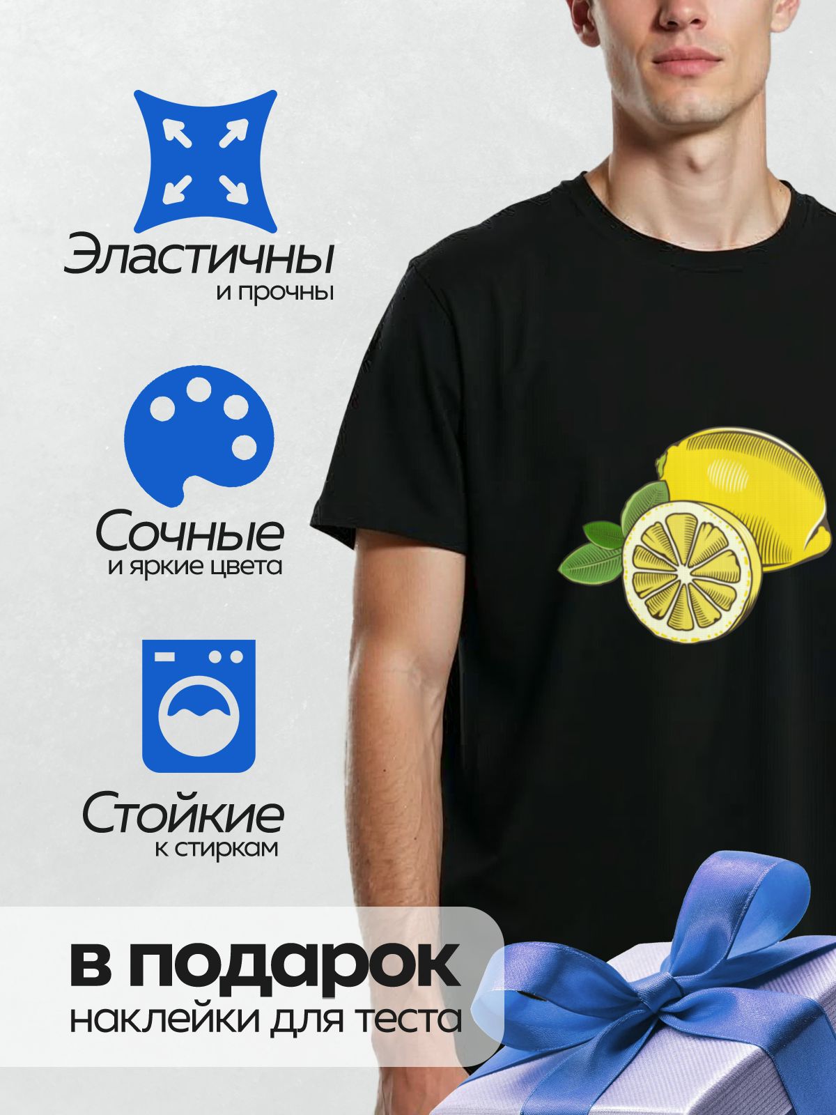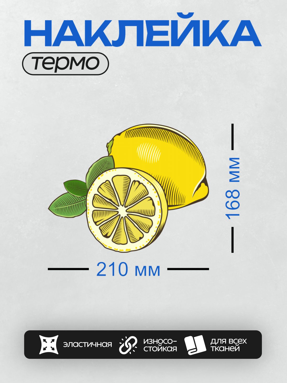 Дизайн: Лимон с листьями: целый плод, долька и зелёные листья. — идеально подходит для декора и восстановления одежды.