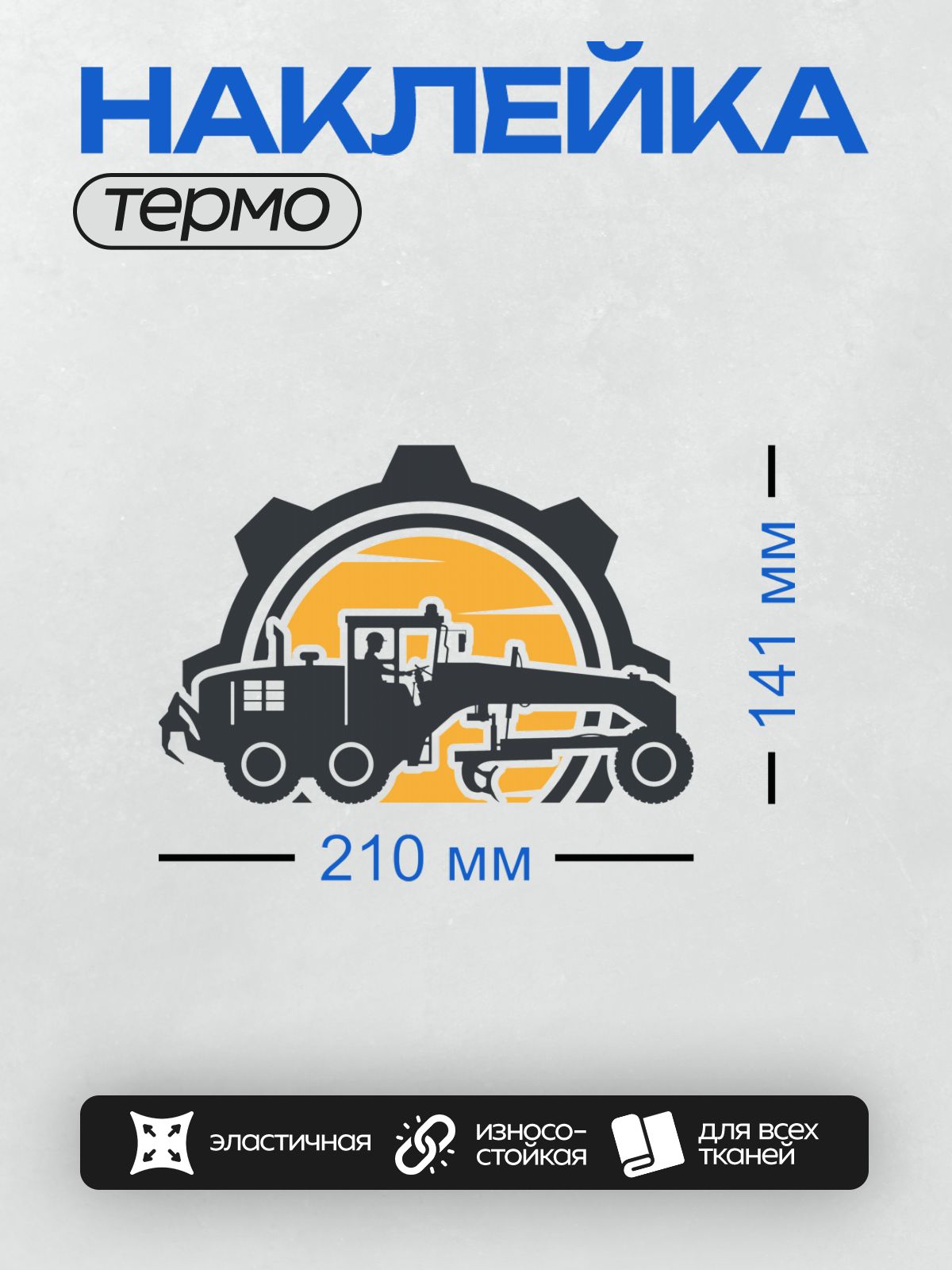 Дизайн: Логотип с автогрейдером и шестерней на фоне. — идеально подходит для декора и восстановления одежды.
