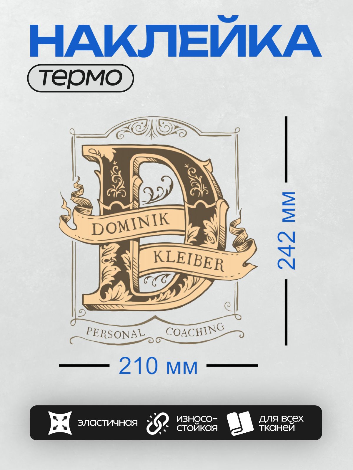 Термонаклейка на одежду DTF / Логотип с буквой “D”, именем “Dominik Kleiber” и надписью “Personal Coaching”.