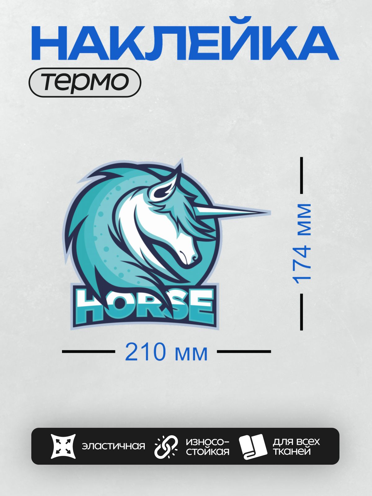 Дизайн: Логотип с головой единорога и надписью “HORSE”. — идеально подходит для декора и восстановления одежды.