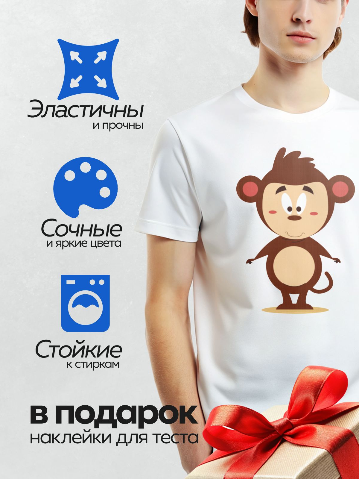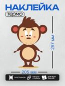 Термонаклейка на одежду DTF / Милая мультяшная обезьянка с большими ушами и хвостом.