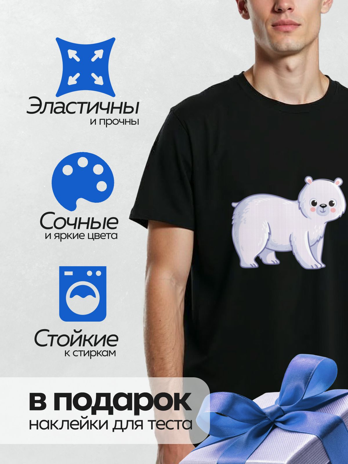 Дизайн: Милый мультяшный белый медведь с большими глазами. — идеально подходит для декора и восстановления одежды.