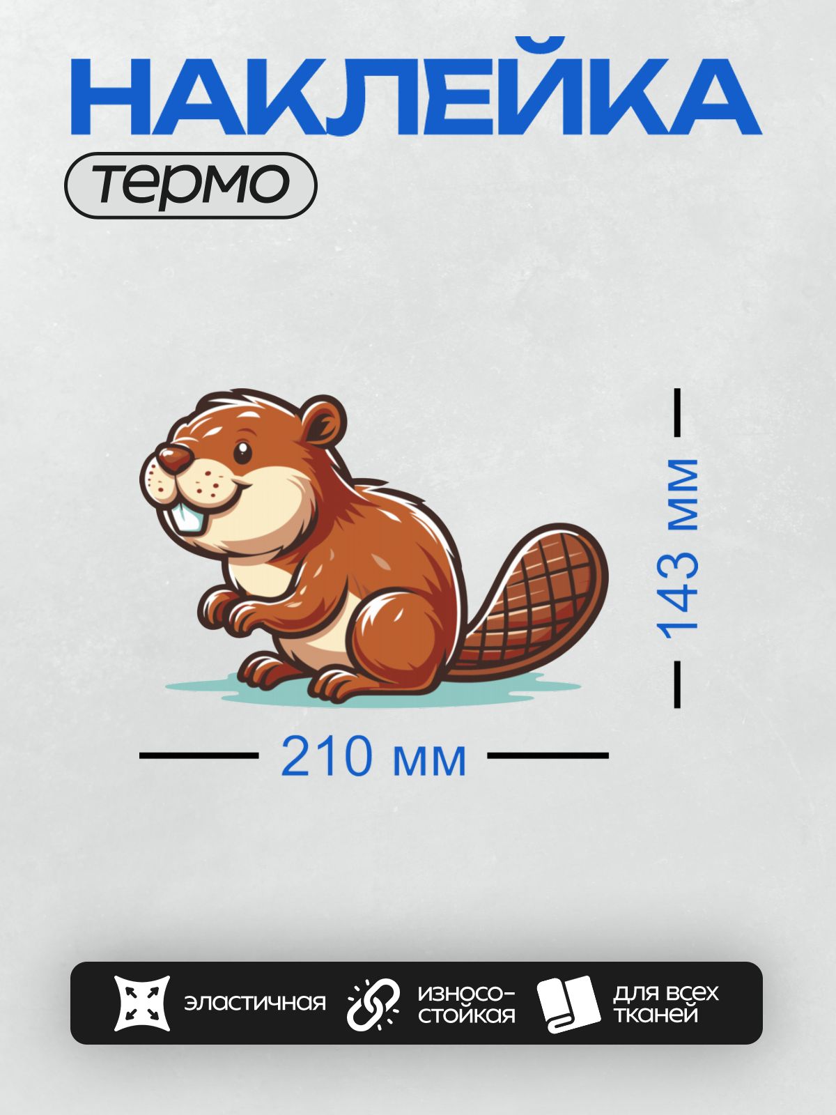 Термонаклейка на одежду DTF / Милый мультяшный бобр с большим хвостом.