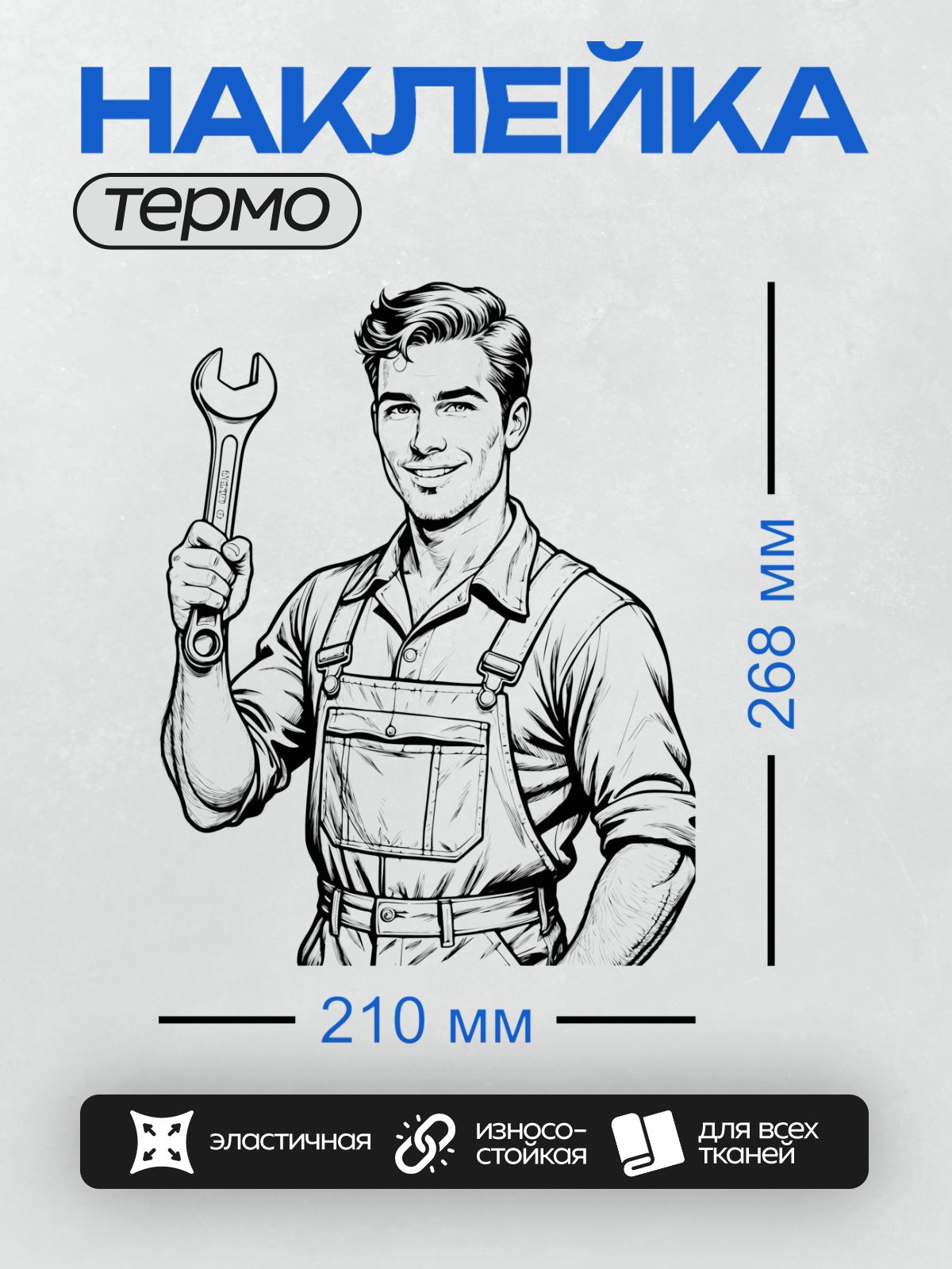 Дизайн: Мужчина в рабочей одежде держит гаечный ключ. — идеально подходит для декора и восстановления одежды.