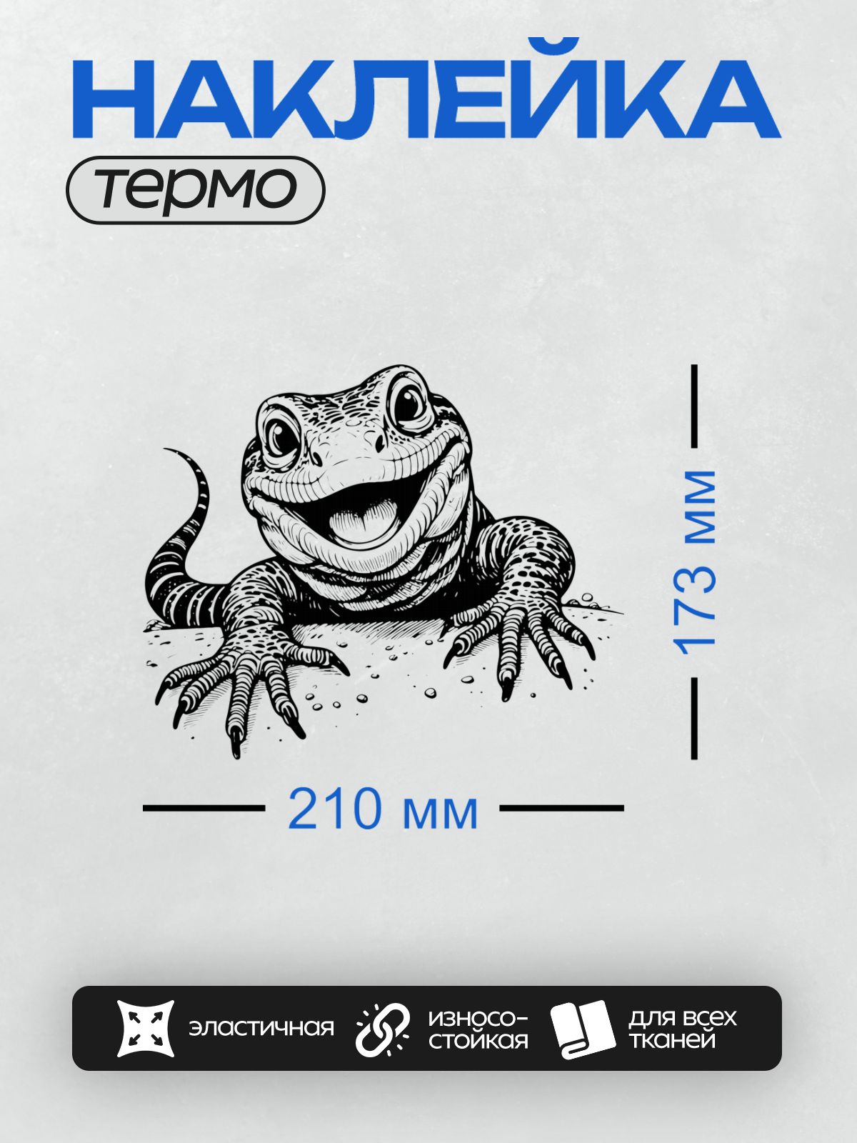 Дизайн: Мультяшная ящерица с большими глазами и улыбкой. — идеально подходит для декора и восстановления одежды.