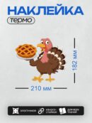 Дизайн: Мультяшная индейка держит пирог на тарелке. — идеально подходит для декора и восстановления одежды.