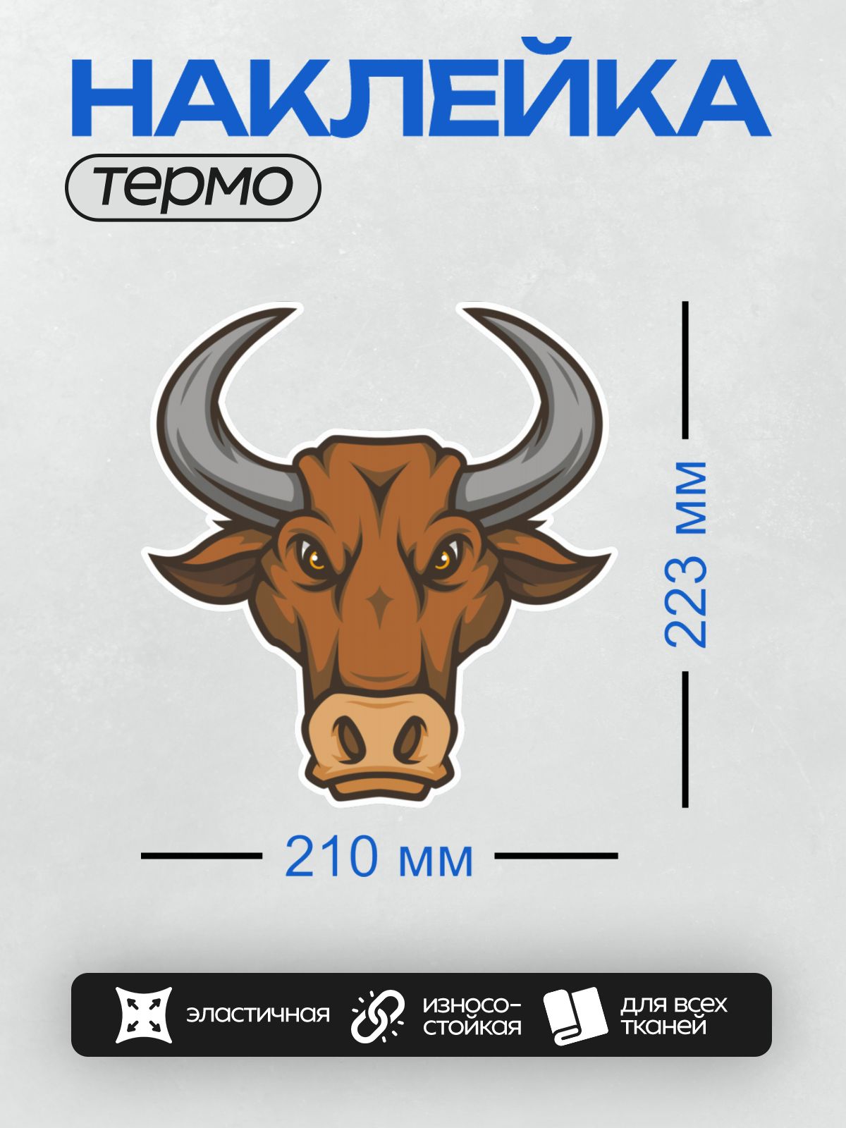 Дизайн: Мультяшная голова быка с большими рогами. — идеально подходит для декора и восстановления одежды.