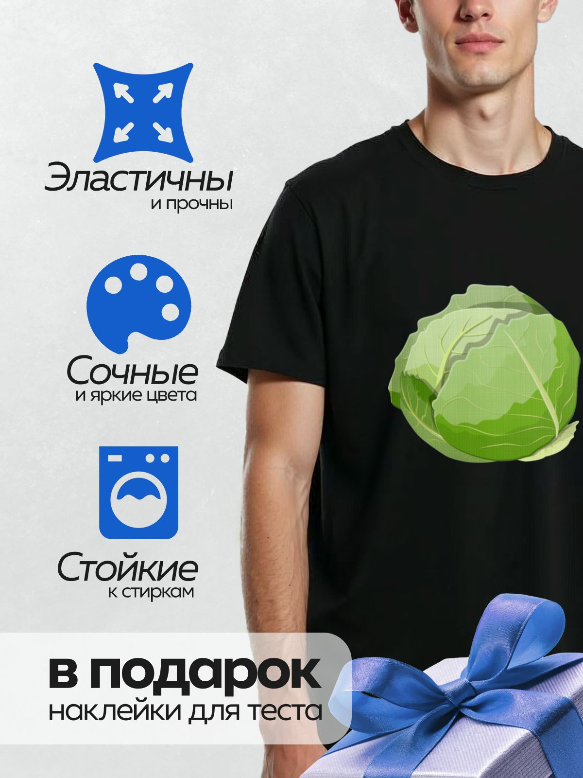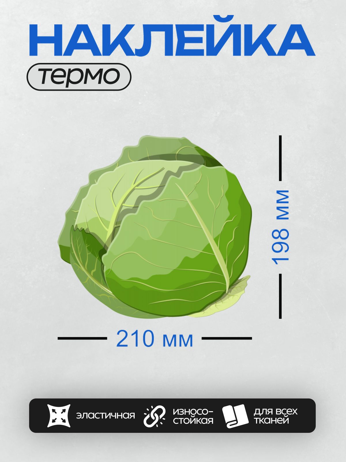 Термонаклейка на одежду DTF / Мультяшная белокочанная капуста с зелёными листьями.