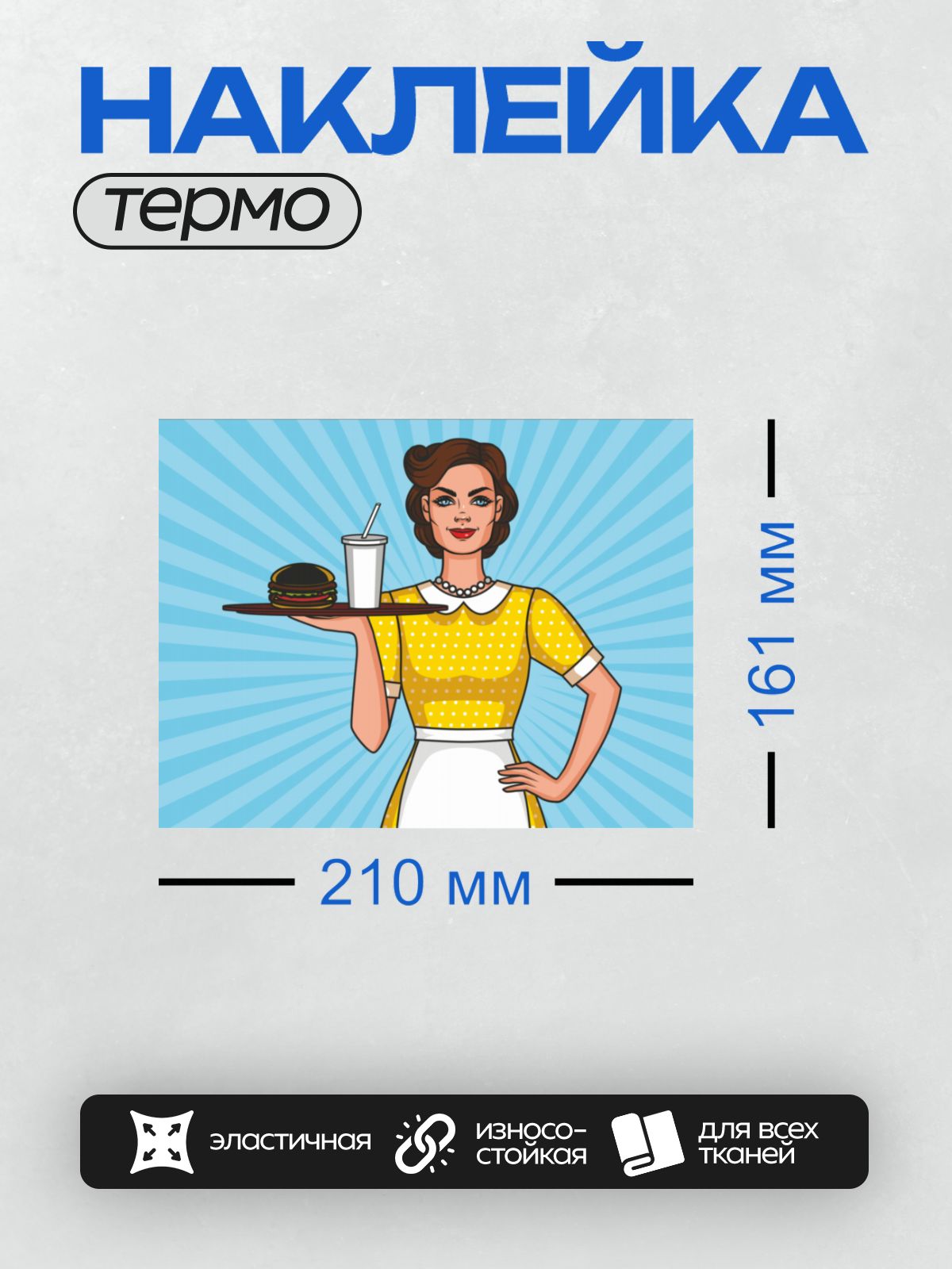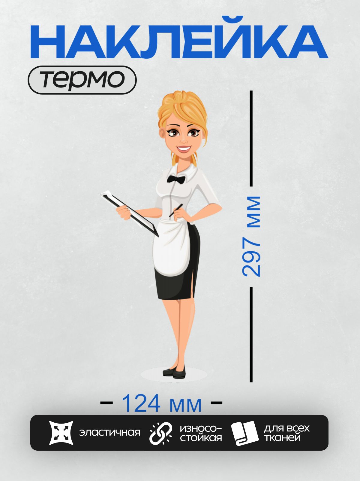 Дизайн: Мультяшная официантка с блокнотом и подносом. — идеально подходит для декора и восстановления одежды.