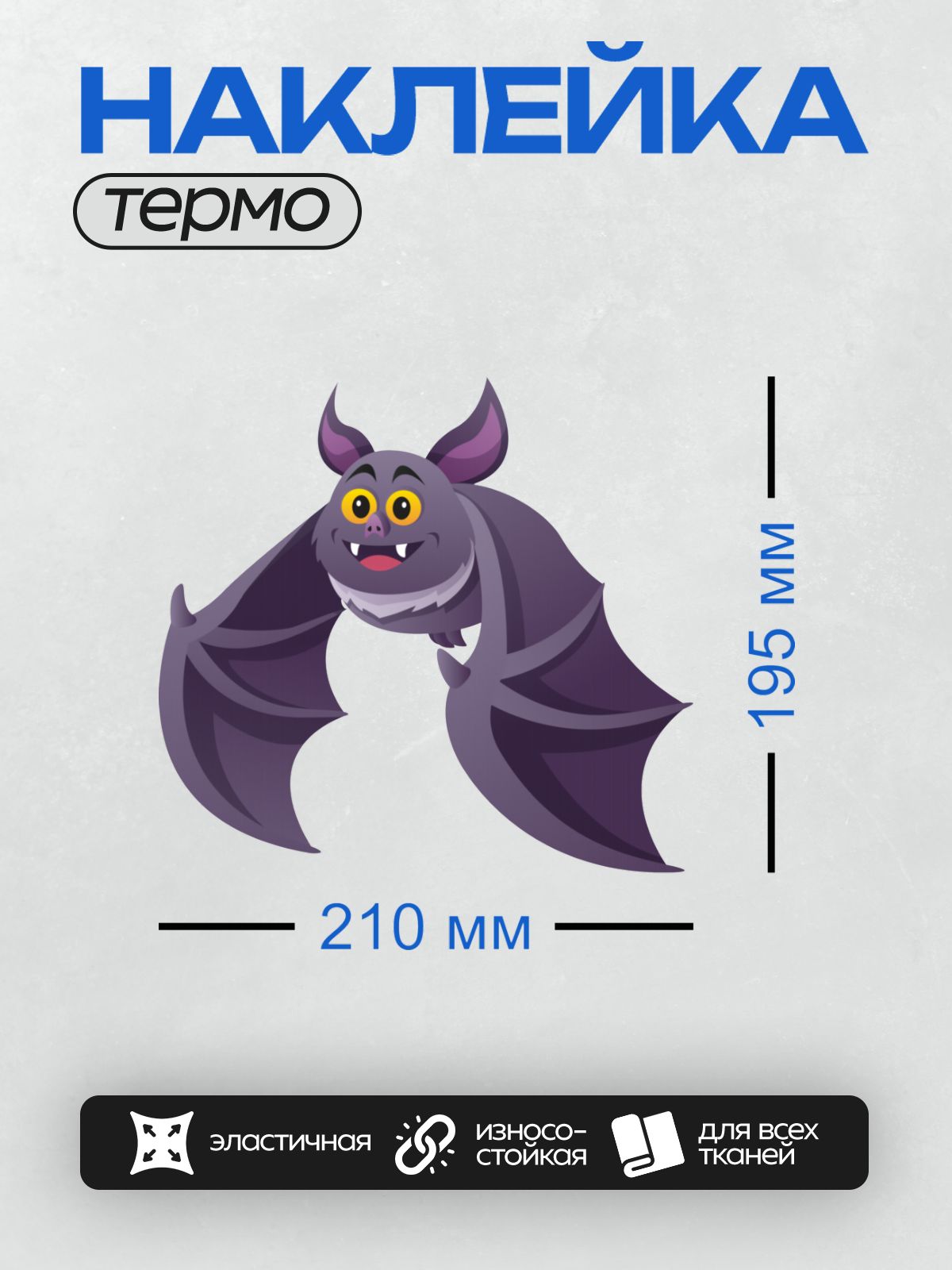 Термонаклейка на одежду DTF / Мультяшная летучая мышь с большими глазами и ушами.