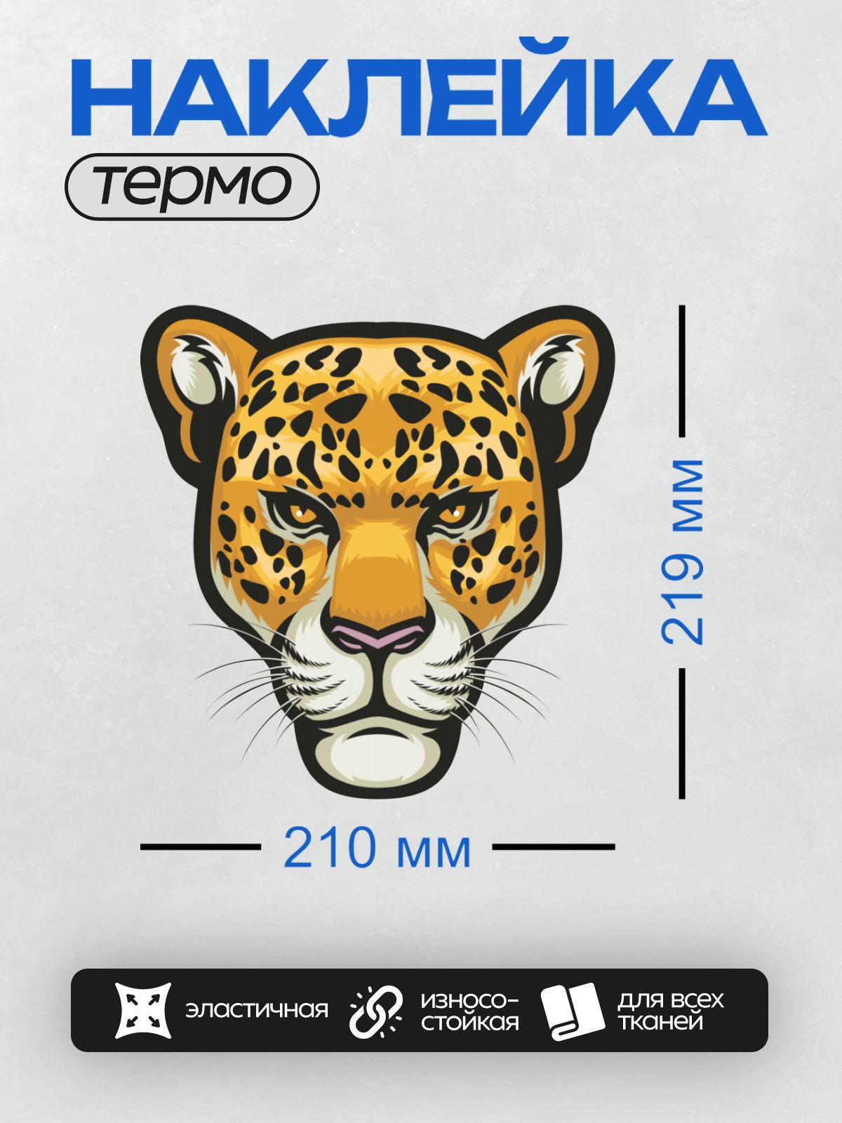 Термонаклейка на одежду DTF / Мультяшная голова леопарда с яркими пятнами.
