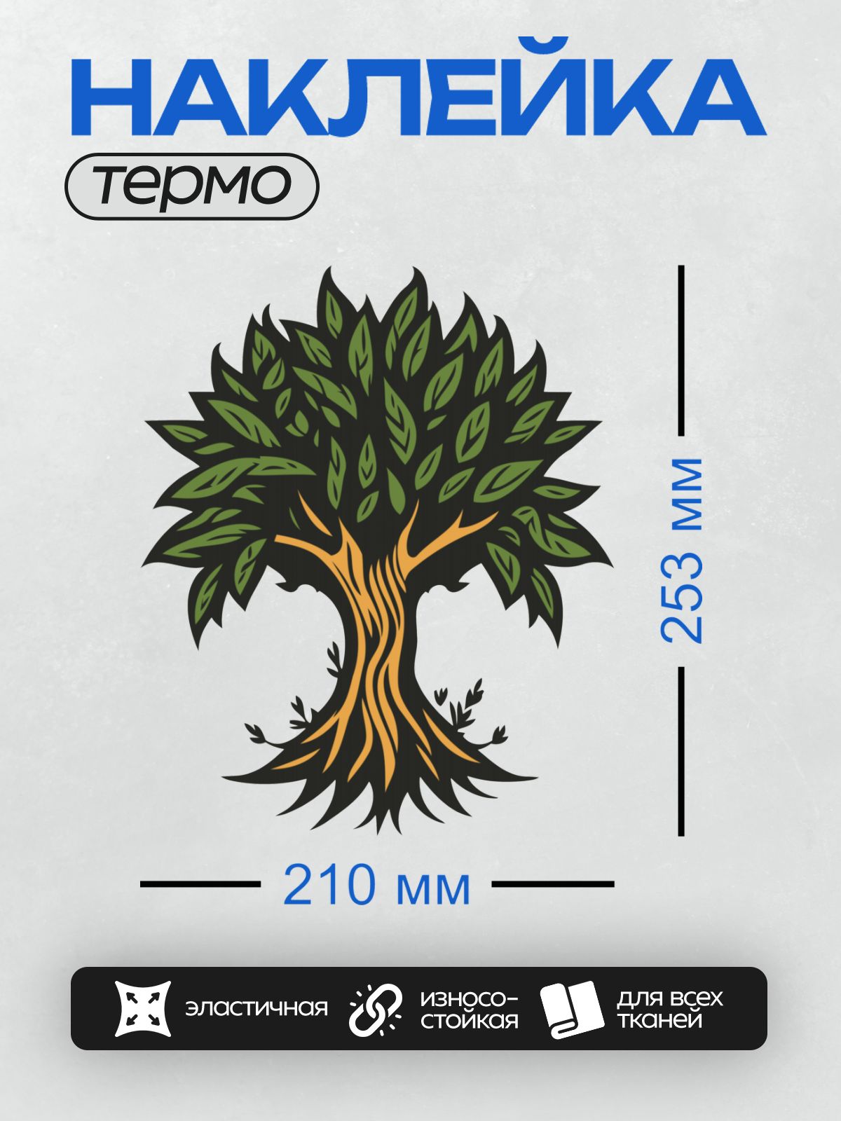 Термонаклейка на одежду DTF / Мультяшное дерево с густой зелёной кроной и корнями.