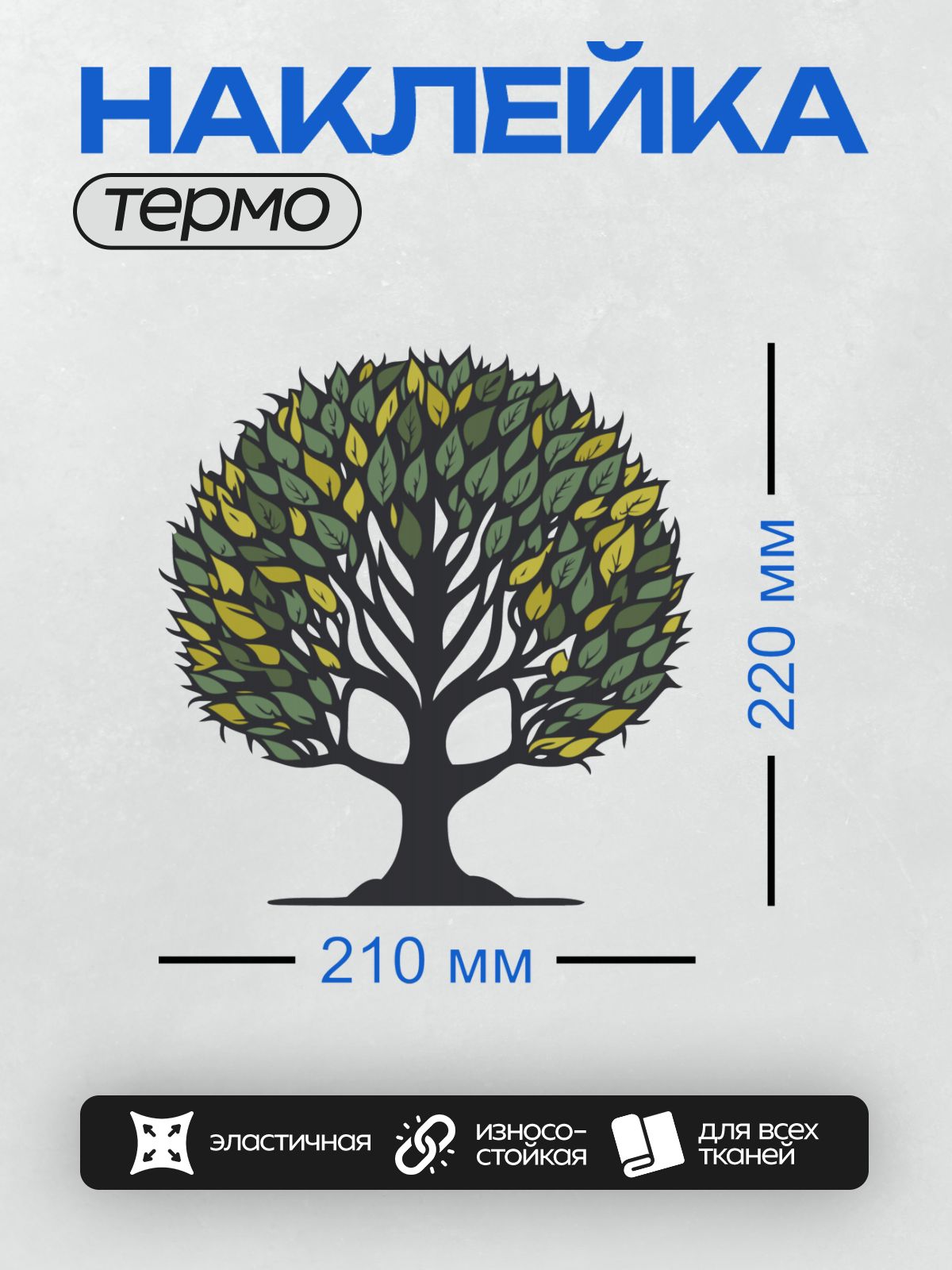 Дизайн: Мультяшное дерево с зелёными листьями и жёлтым стволом. — идеально подходит для декора и восстановления одежды.