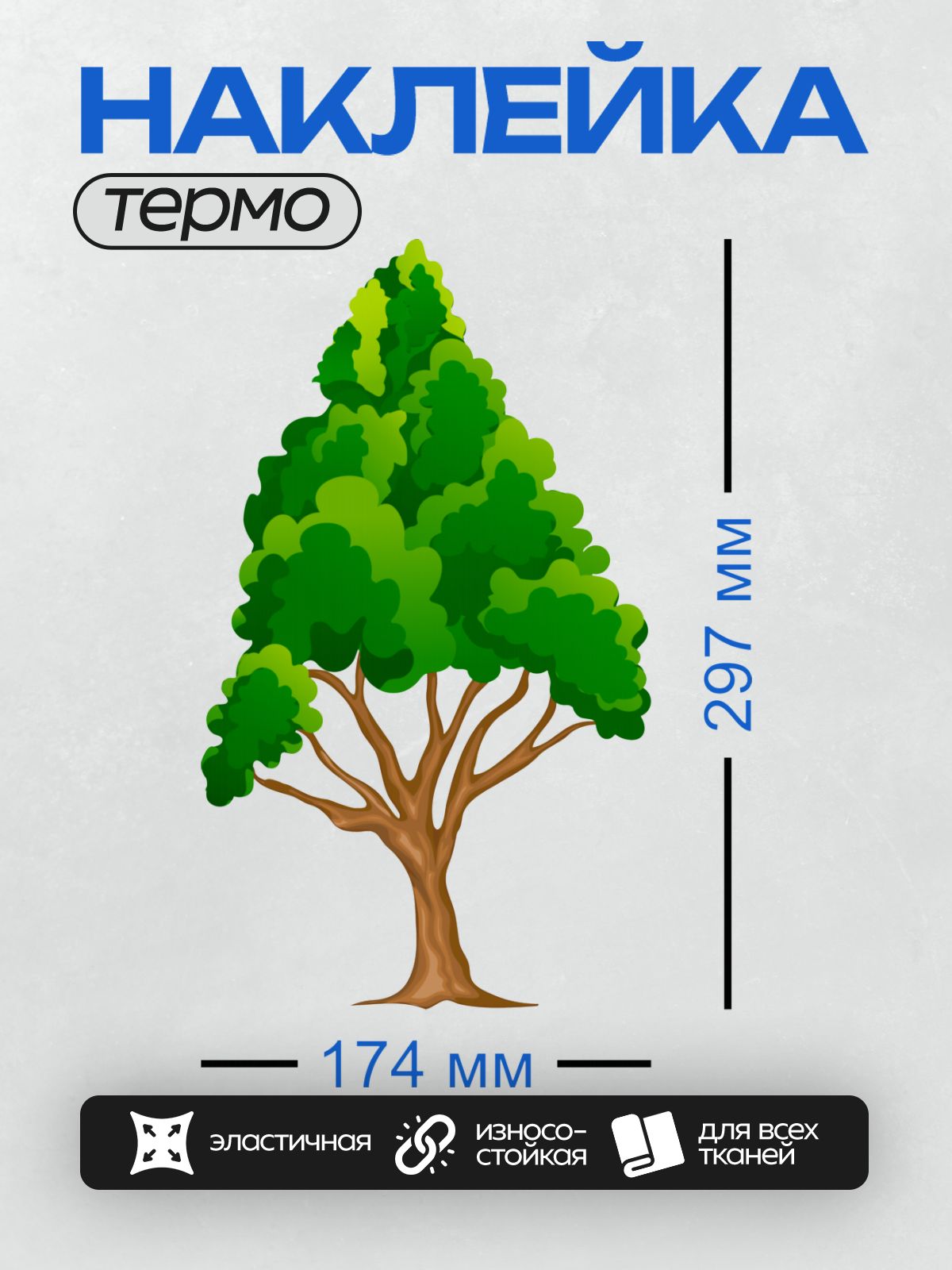 Дизайн: Мультяшное дерево с густой кроной и коричневым стволом. — идеально подходит для декора и восстановления одежды.