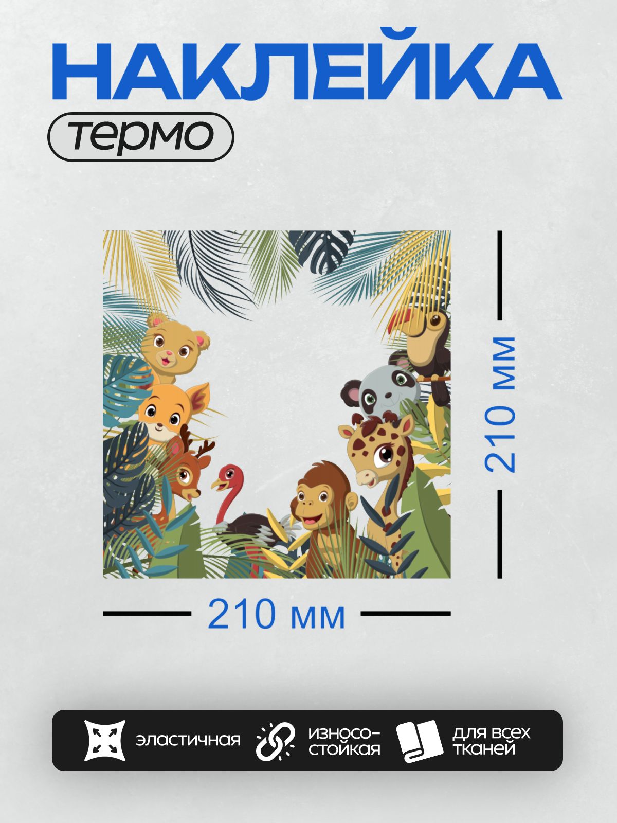 Дизайн: Мультяшные животные в джунглях: лев, жираф, панда, тукан. — идеально подходит для декора и восстановления одежды.