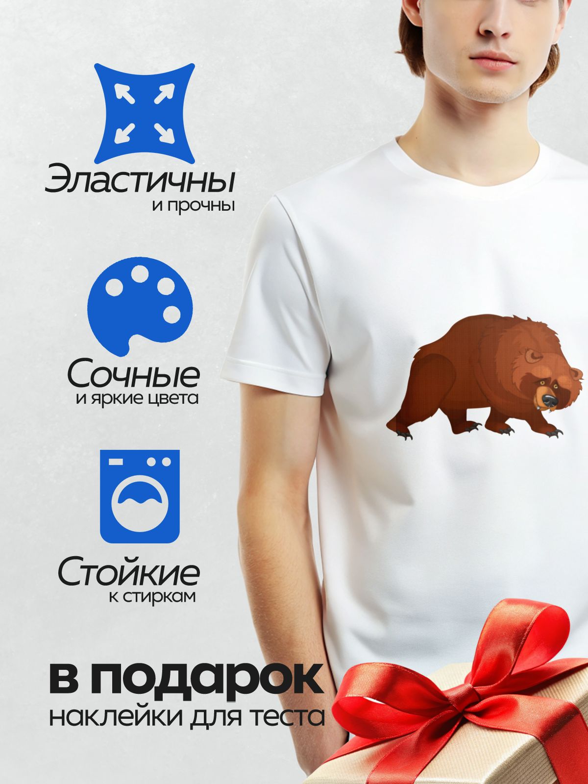 Термонаклейка на одежду DTF / Мультяшный бурый медведь с сердитым выражением.