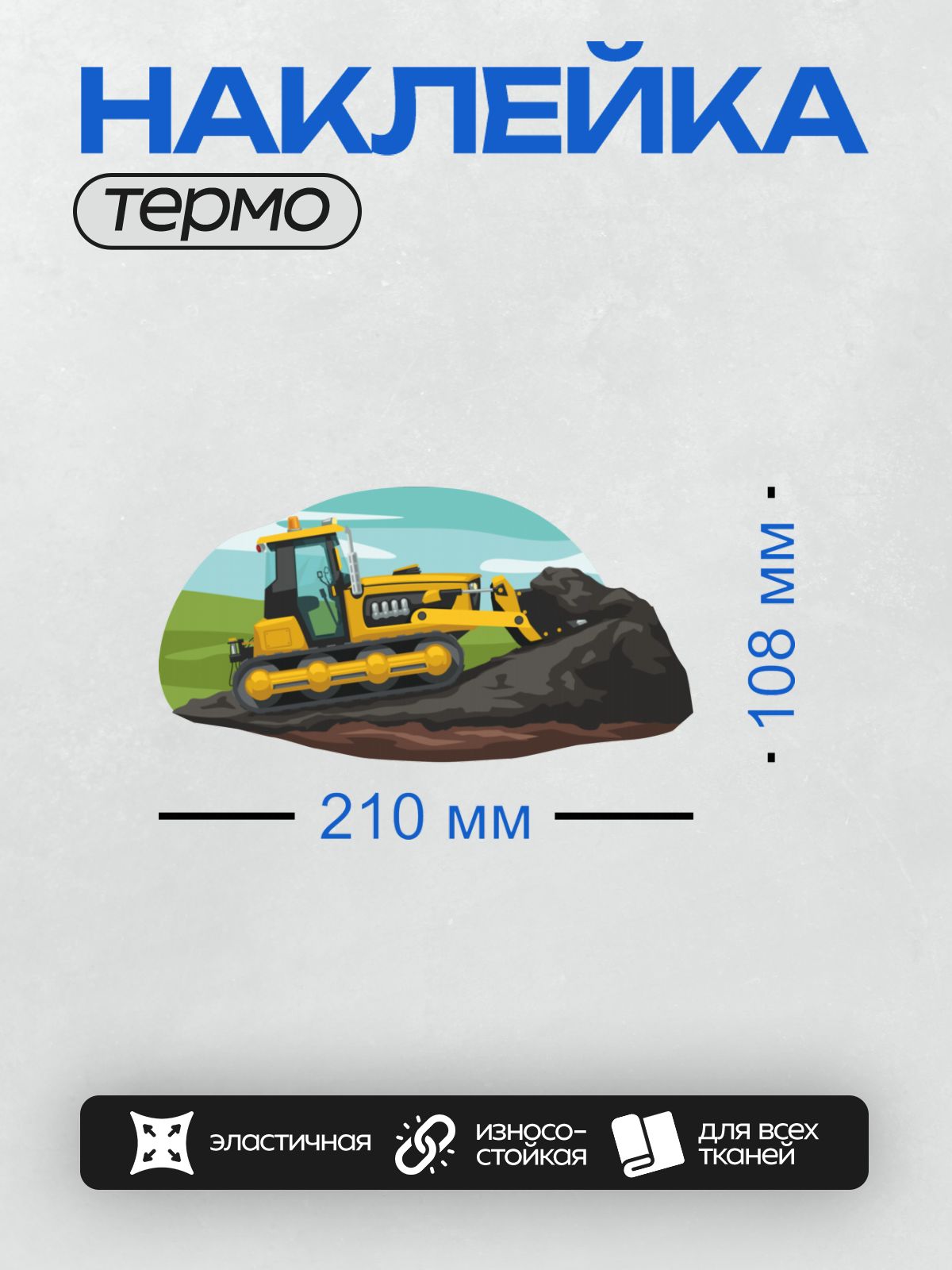 Термонаклейка на одежду DTF / Мультяшный бульдозер с большим отвалом на белом фоне.