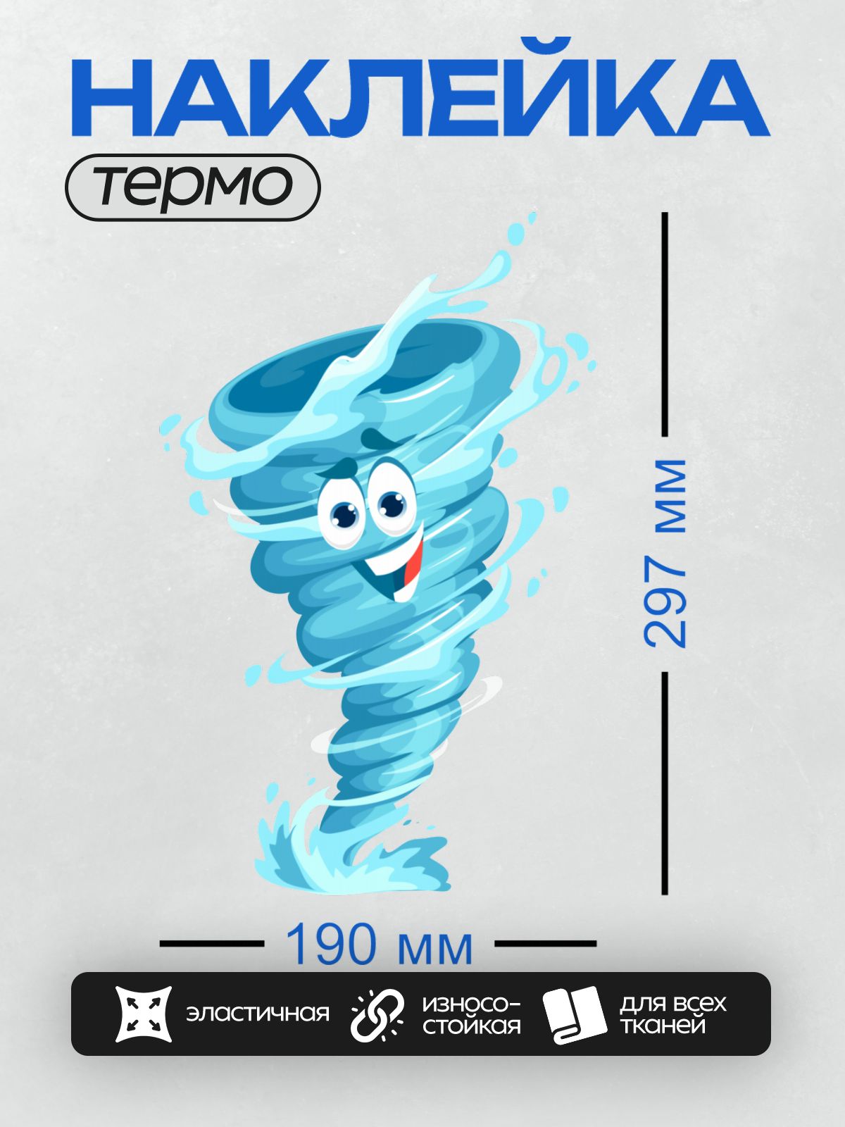 Дизайн: Мультяшный торнадо с плавными линиями и голубыми оттенками. — идеально подходит для декора и восстановления одежды.