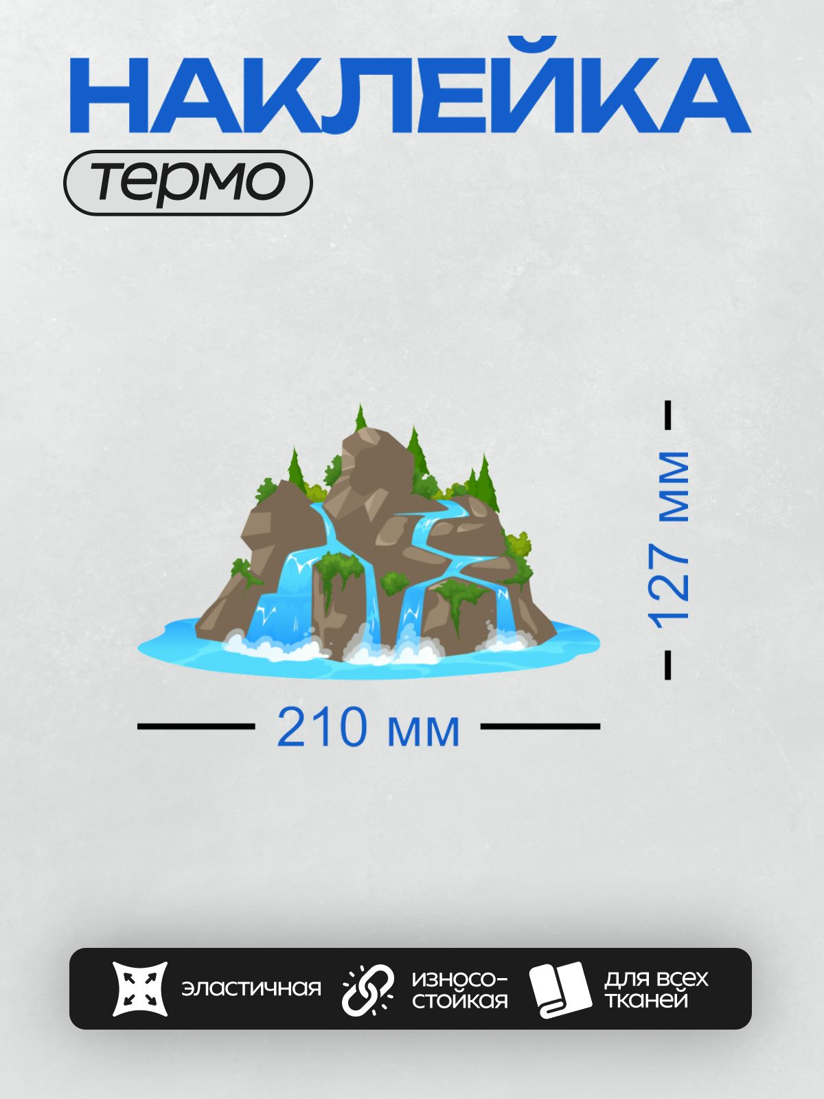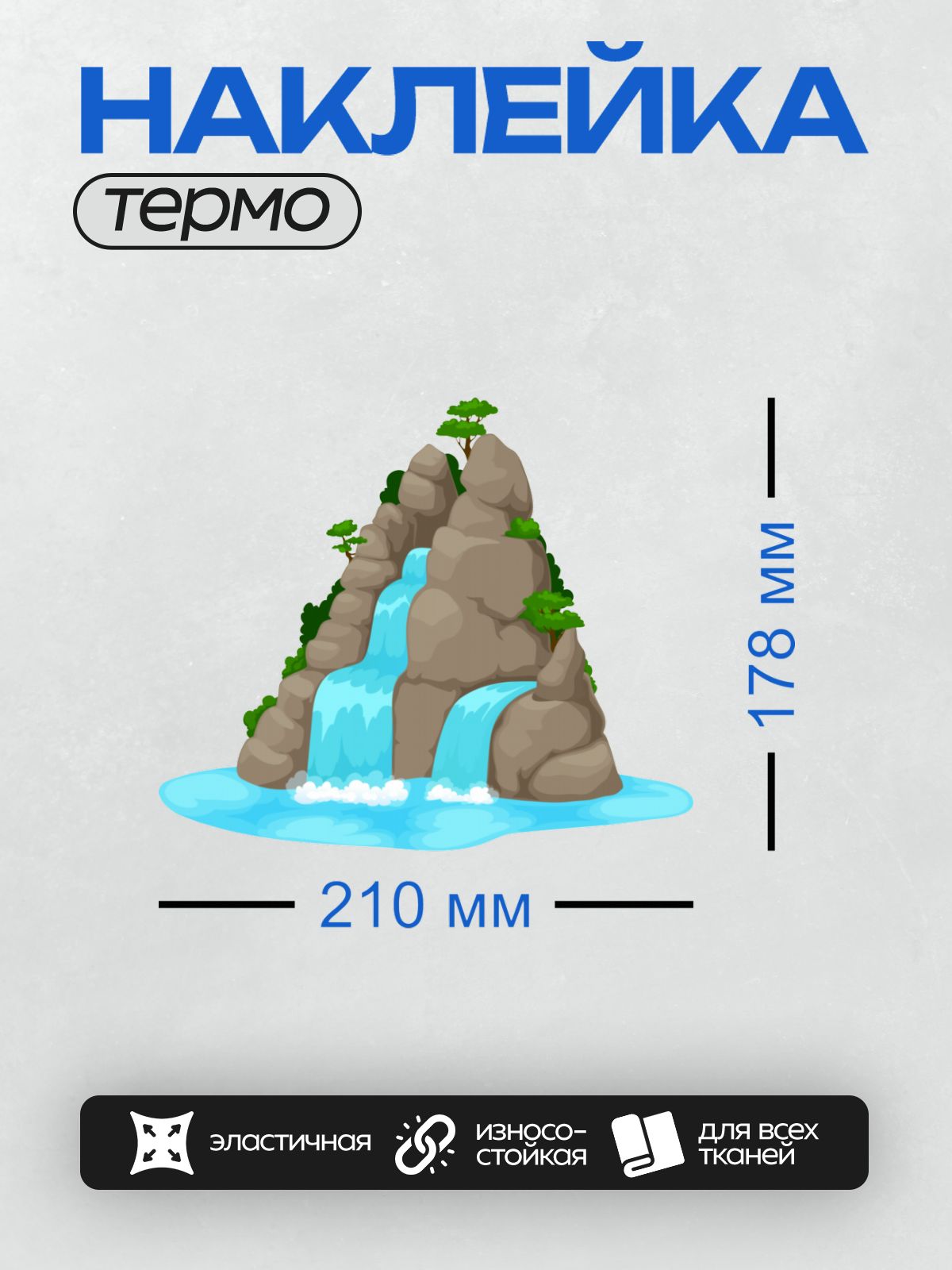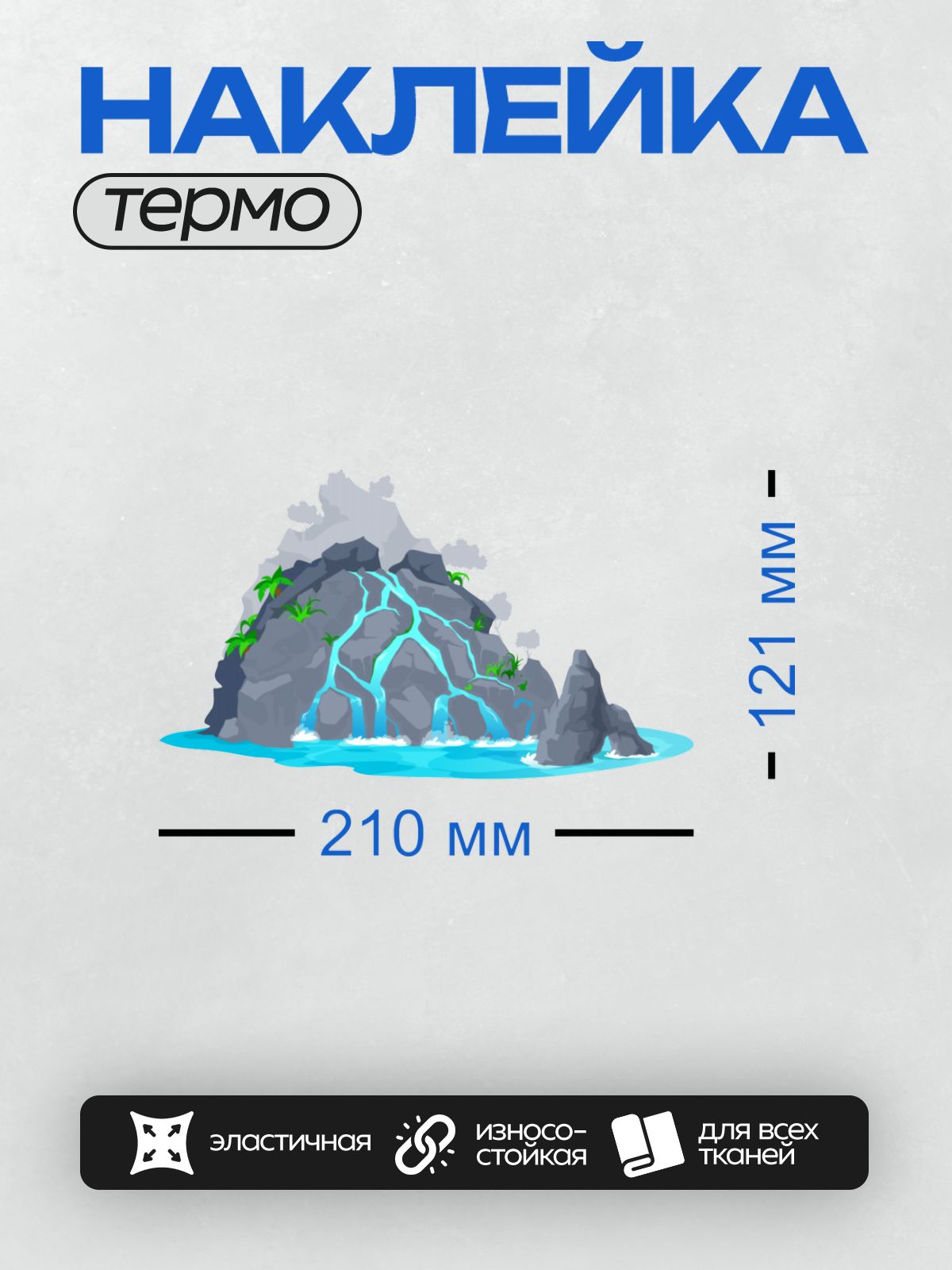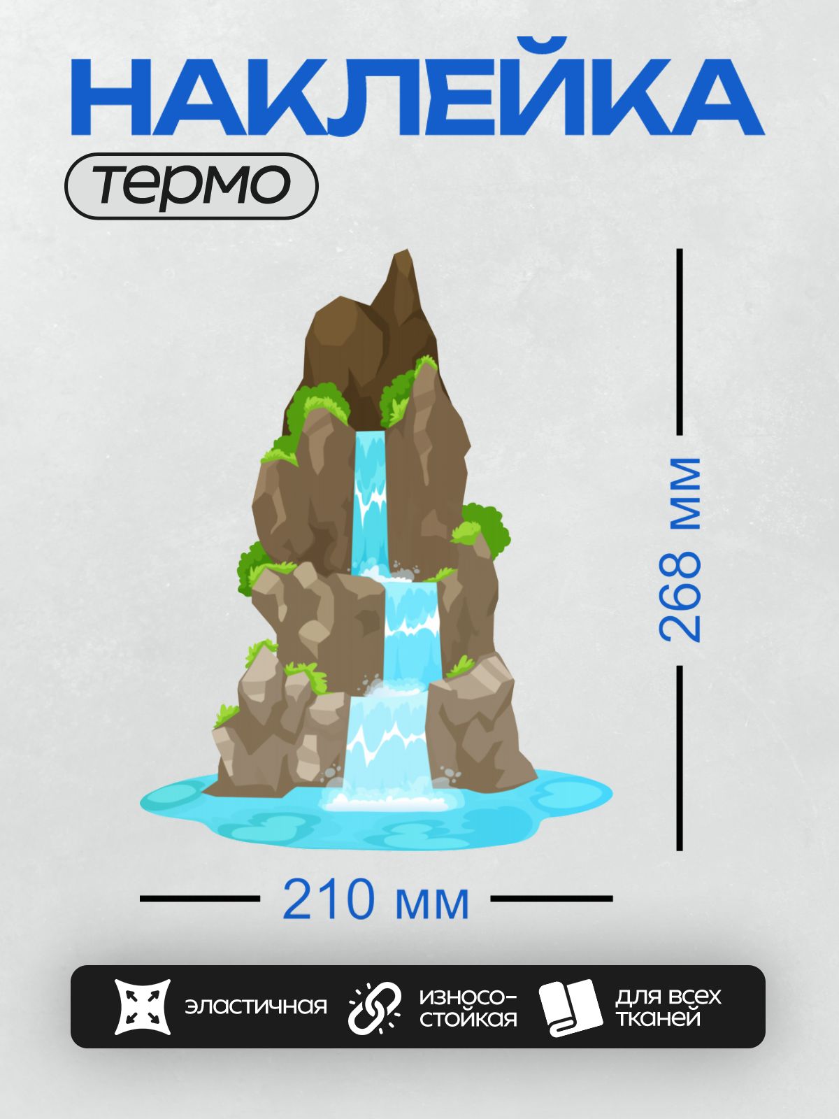 Дизайн: Мультяшный водопад, скалы, пальмы, пруд, природа. — идеально подходит для декора и восстановления одежды.