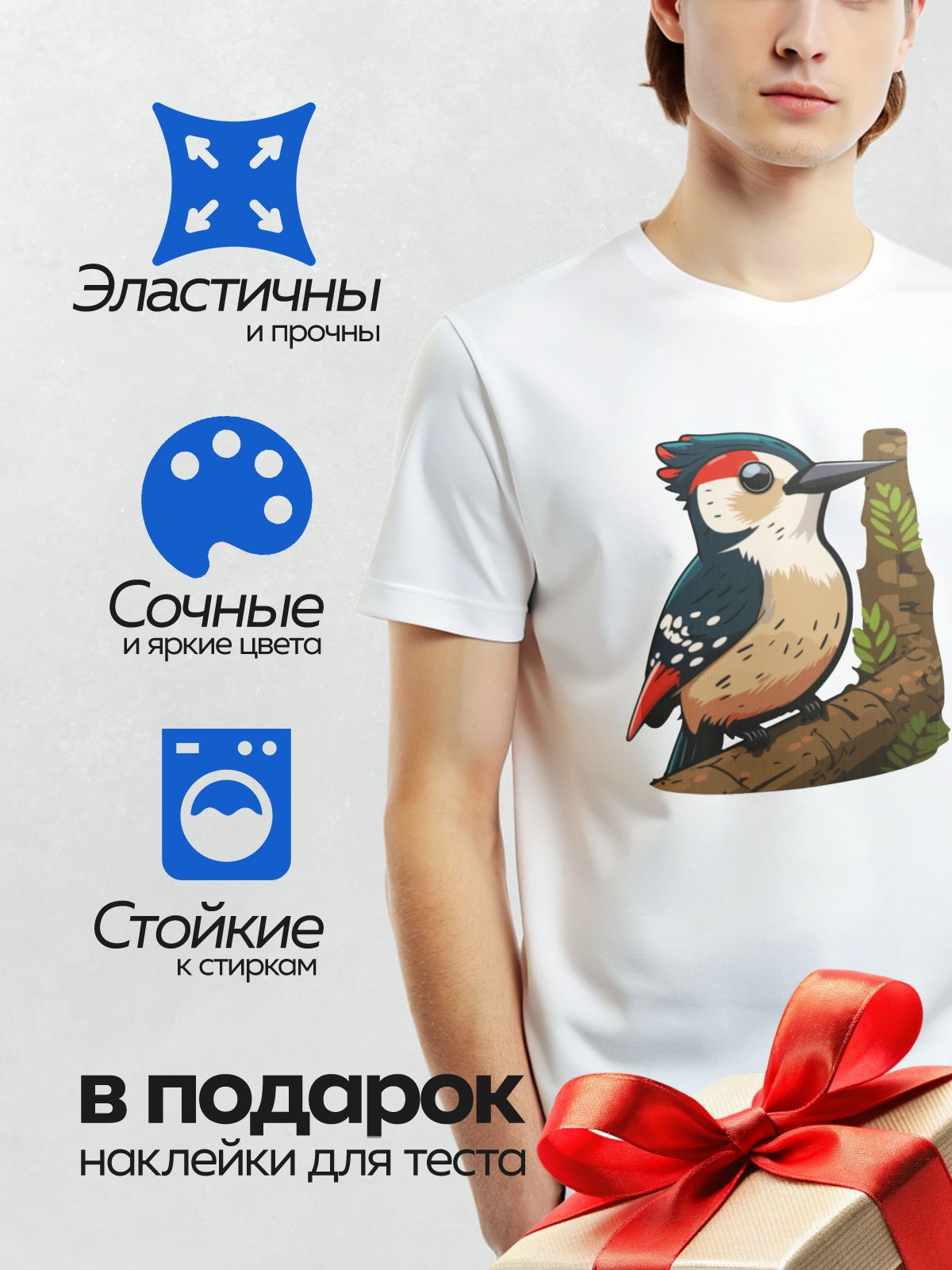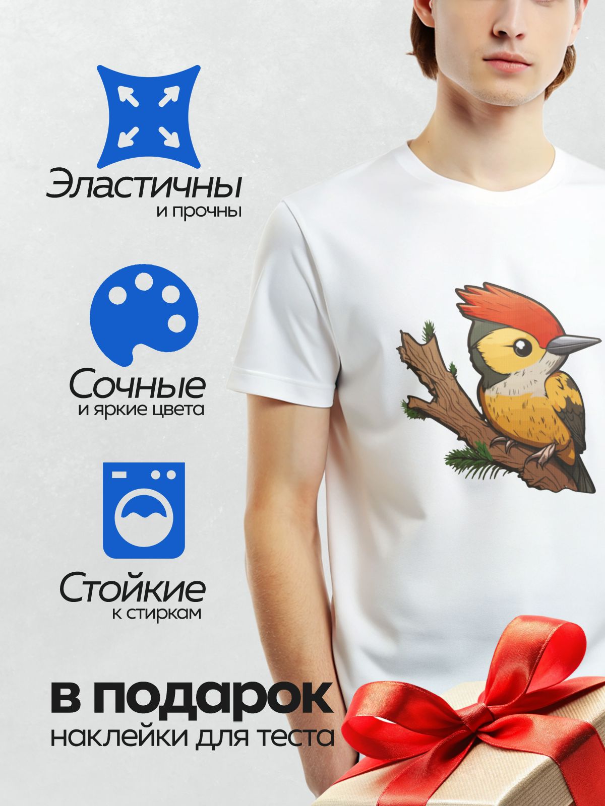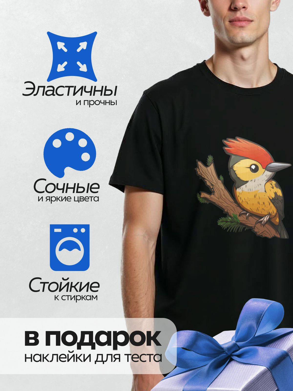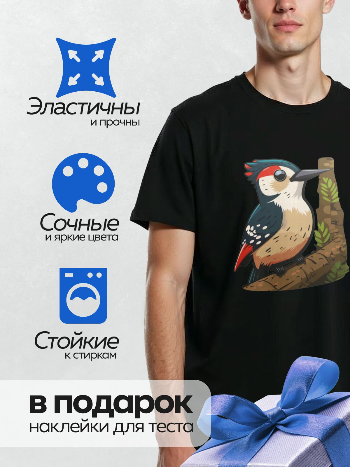 Дизайн: Мультяшный дятел с красным хохолком на ветке. — идеально подходит для декора и восстановления одежды.