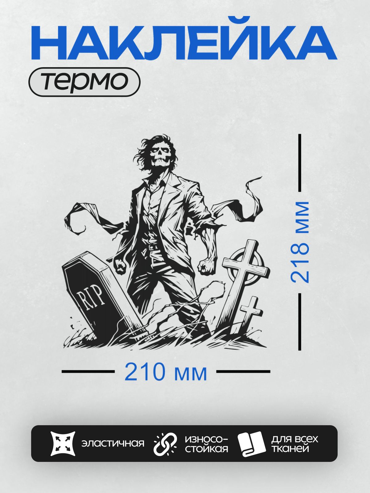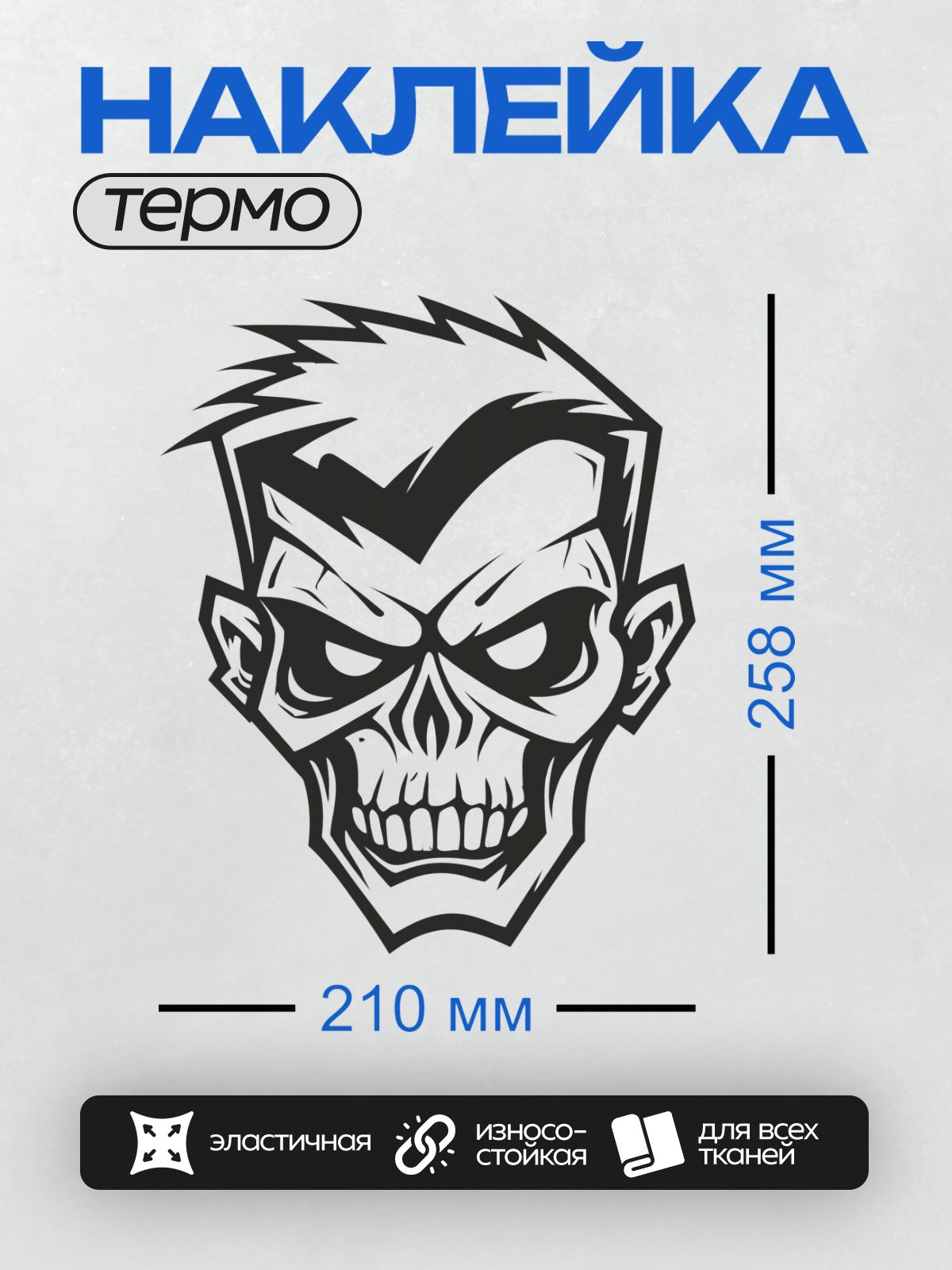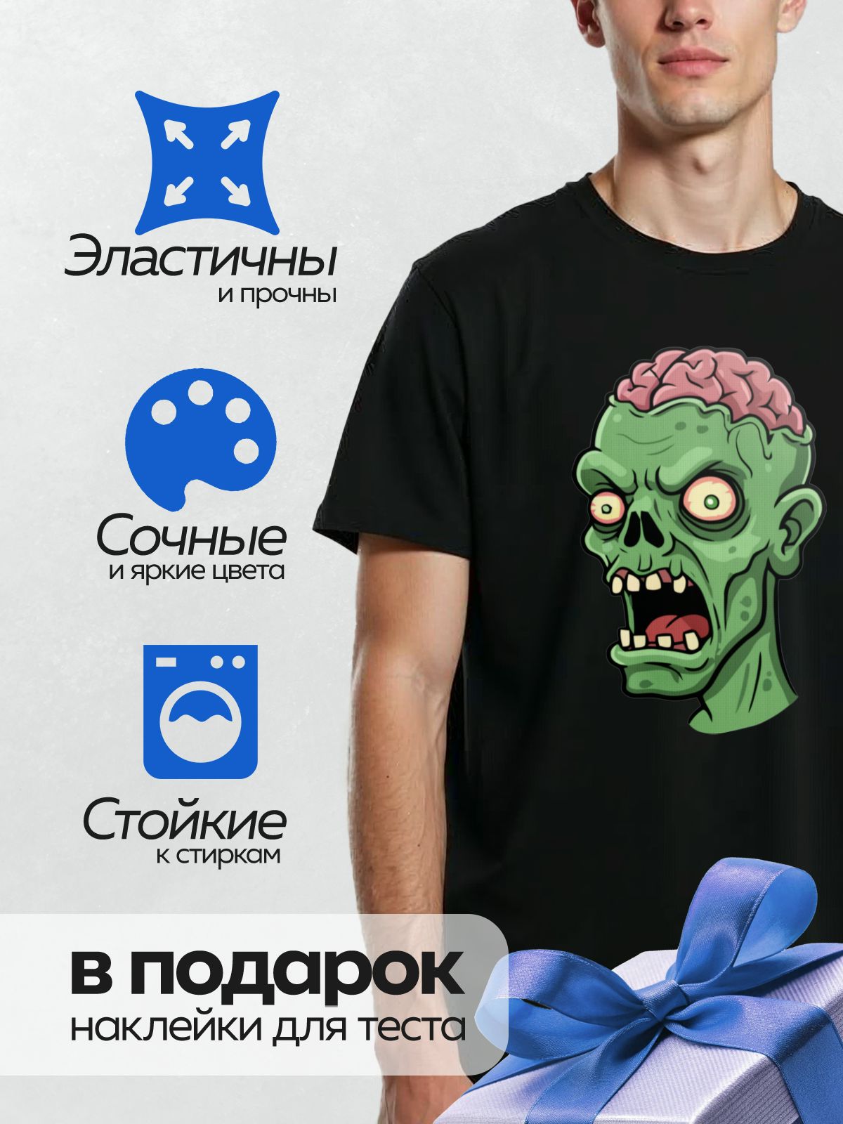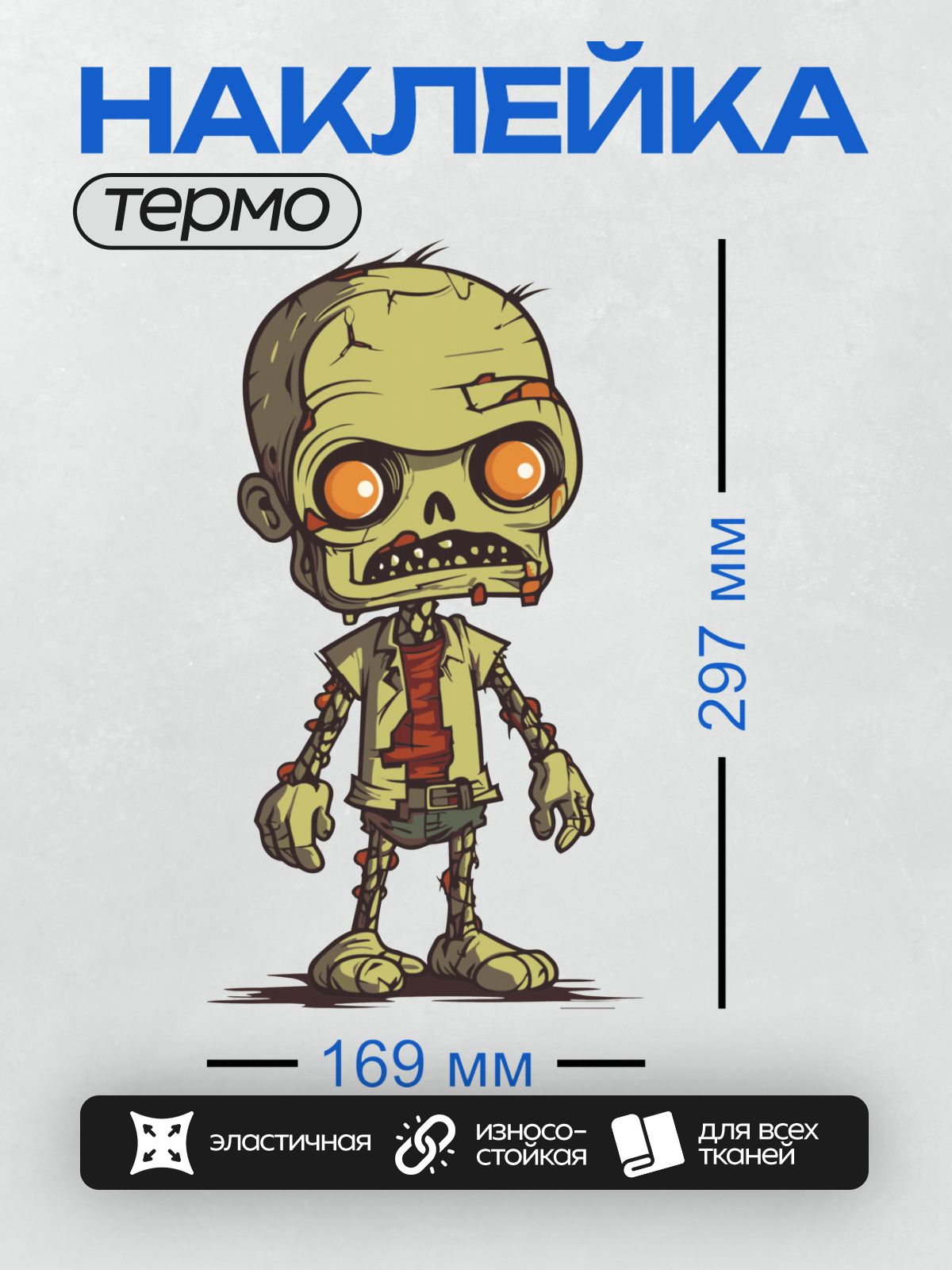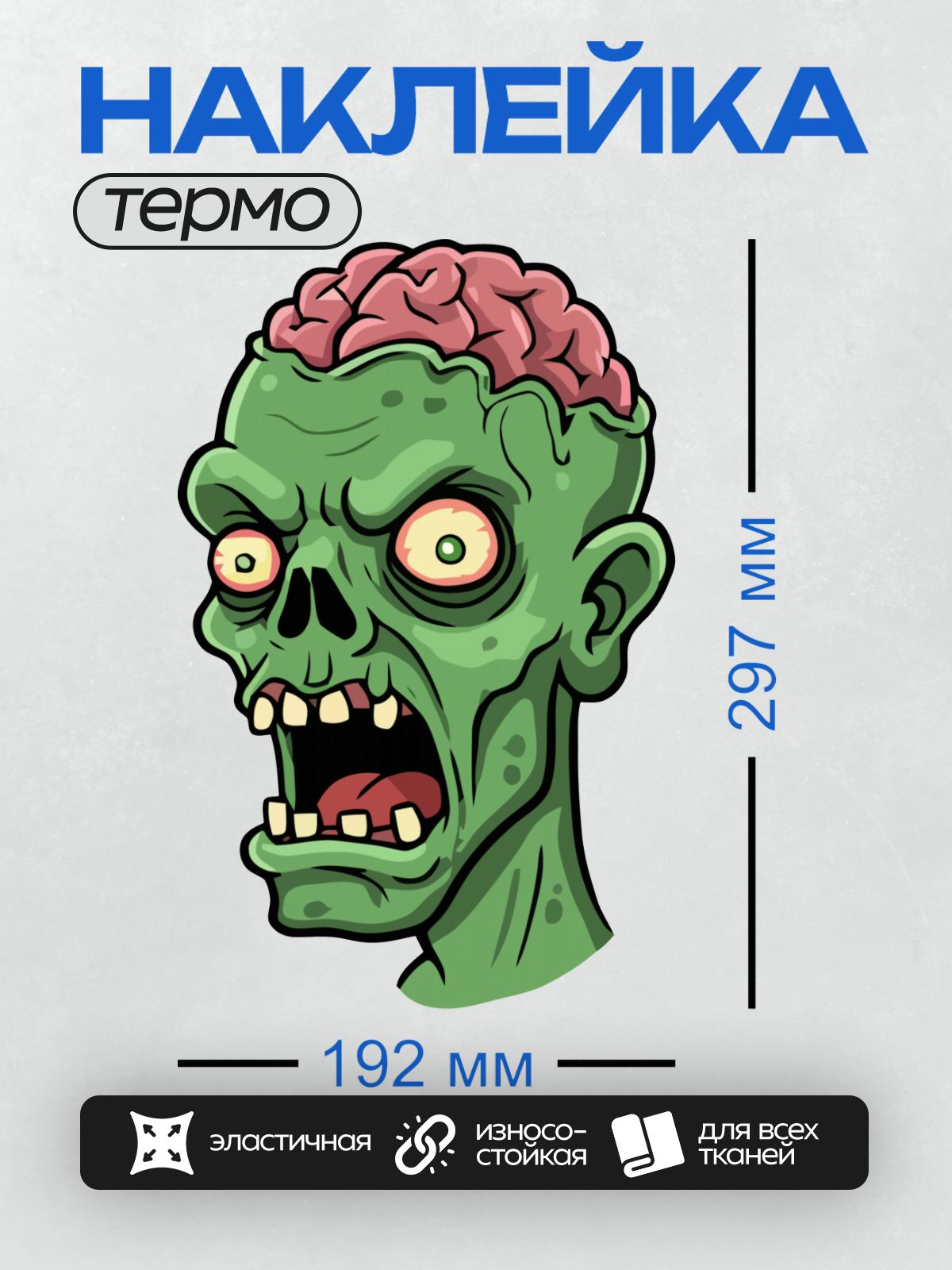 Дизайн: Мультяшный зомби с острыми зубами и агрессивным взглядом. — идеально подходит для декора и восстановления одежды.