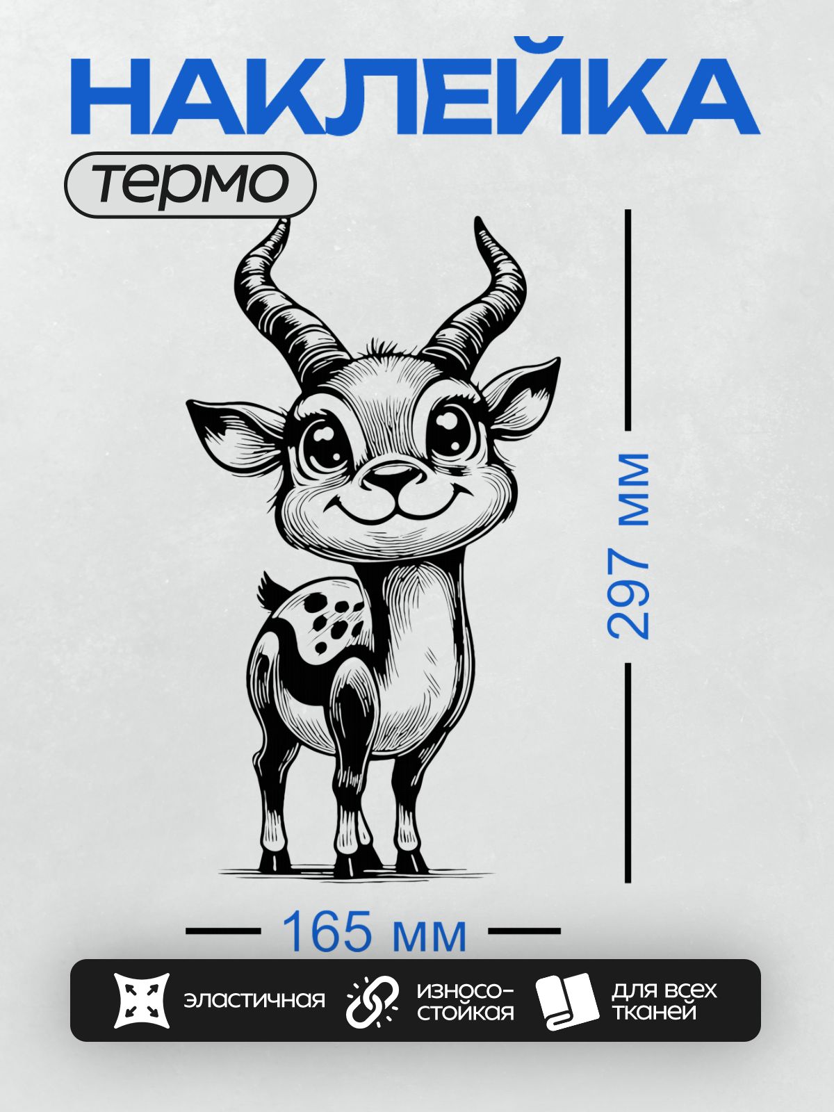 Термонаклейка на одежду DTF / Мультяшный козёл с большими рогами и забавной мордочкой.