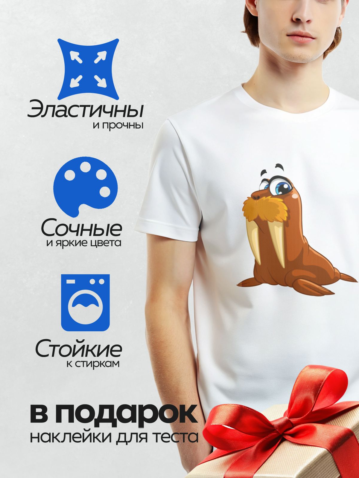 Дизайн: Мультяшный морж с большими глазами и усами. — идеально подходит для декора и восстановления одежды.