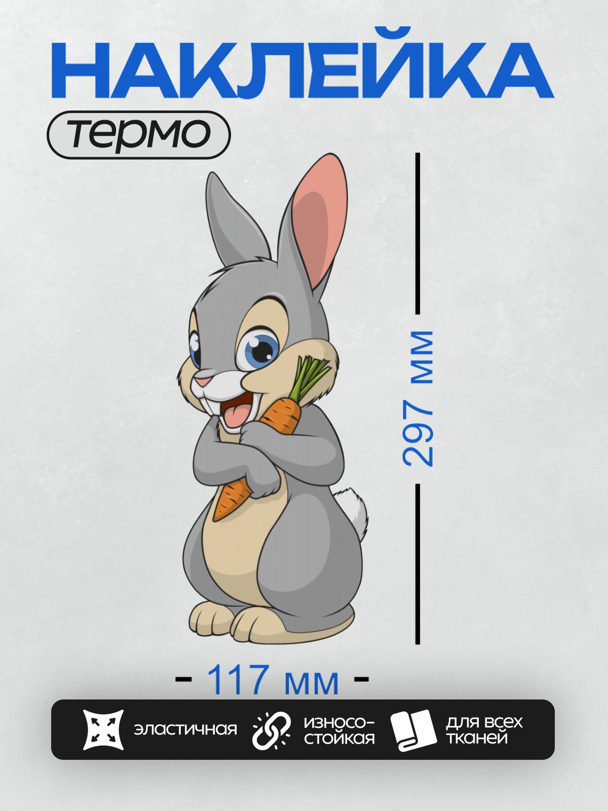 Дизайн: Мультяшный кролик с морковкой, улыбается. — идеально подходит для декора и восстановления одежды.