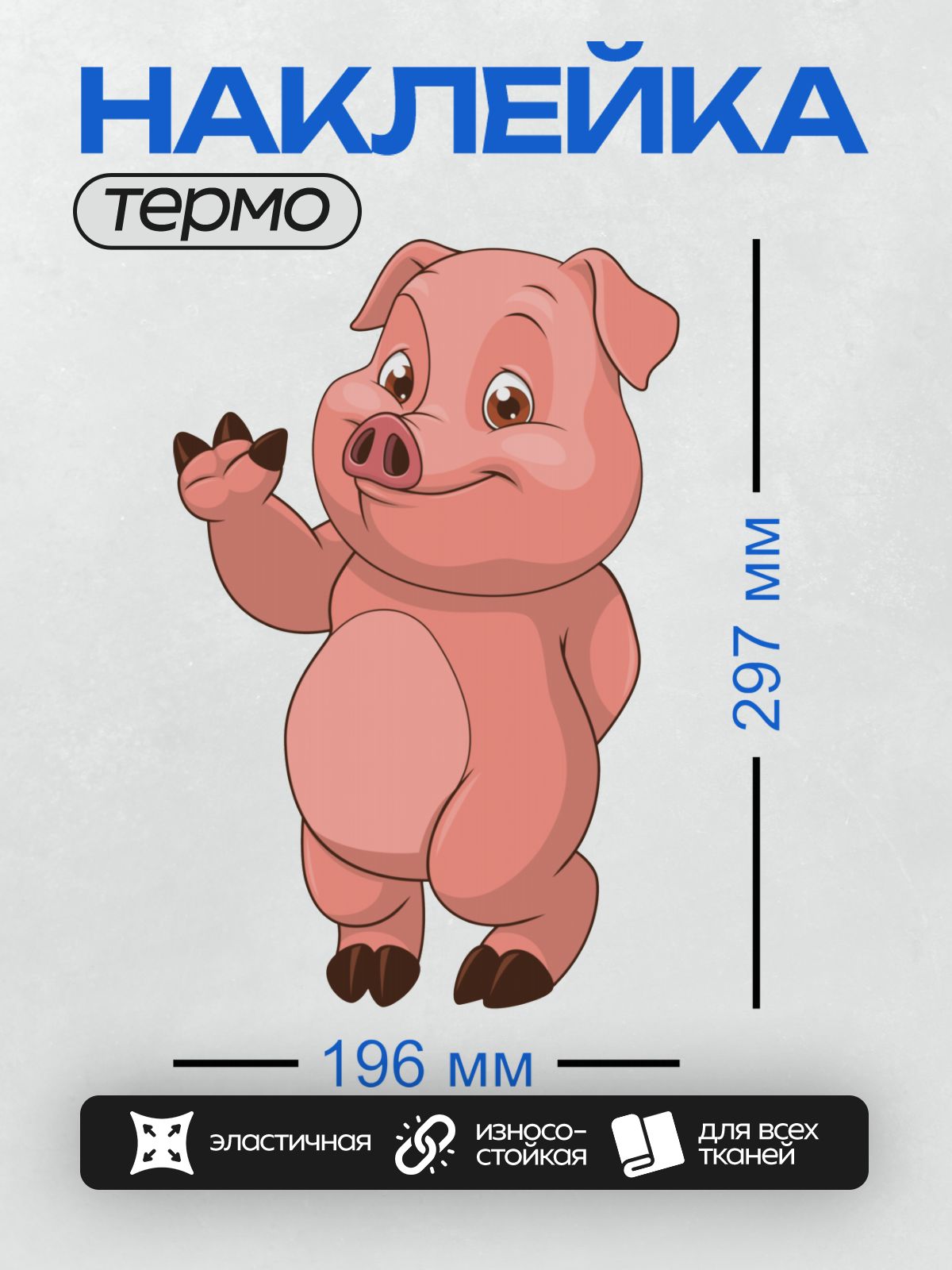 Дизайн: Мультяшный розовый поросёнок с добрыми глазами. — идеально подходит для декора и восстановления одежды.