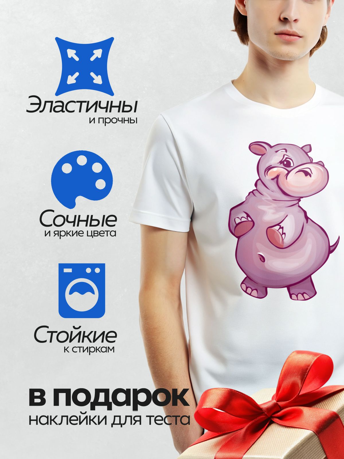 Дизайн: Мультяшный бегемотик с розовыми щечками и улыбкой. — идеально подходит для декора и восстановления одежды.