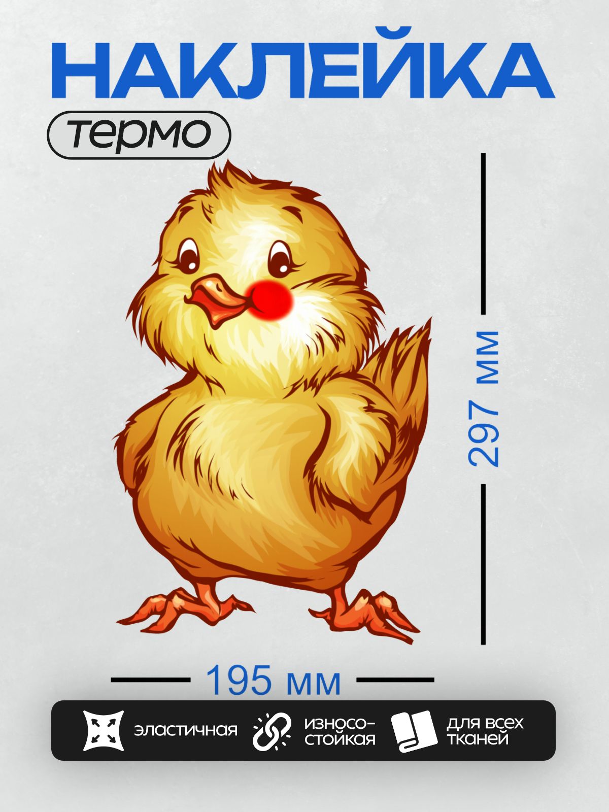 Дизайн: Мультяшный цыпленок с красным пятном на клюве. — идеально подходит для декора и восстановления одежды.