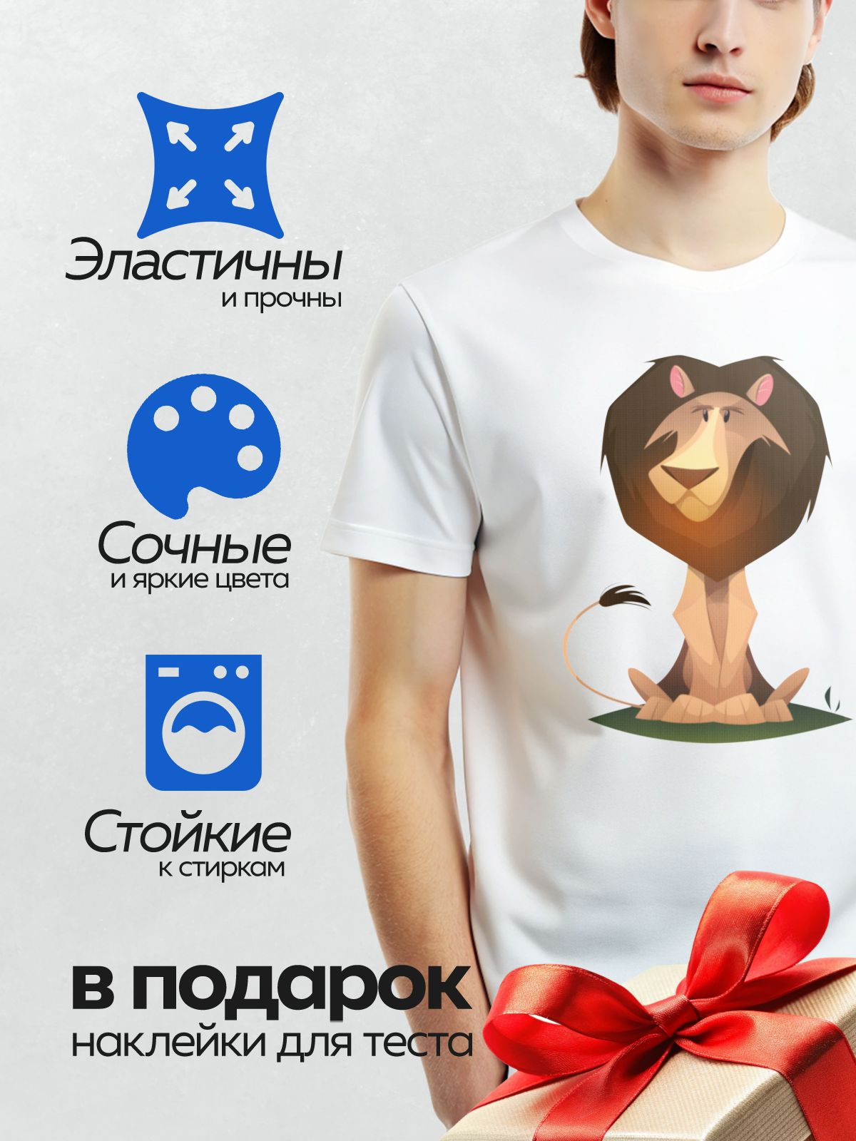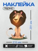Дизайн: Мультяшный лев с большой гривой сидит на земле. — идеально подходит для декора и восстановления одежды.
